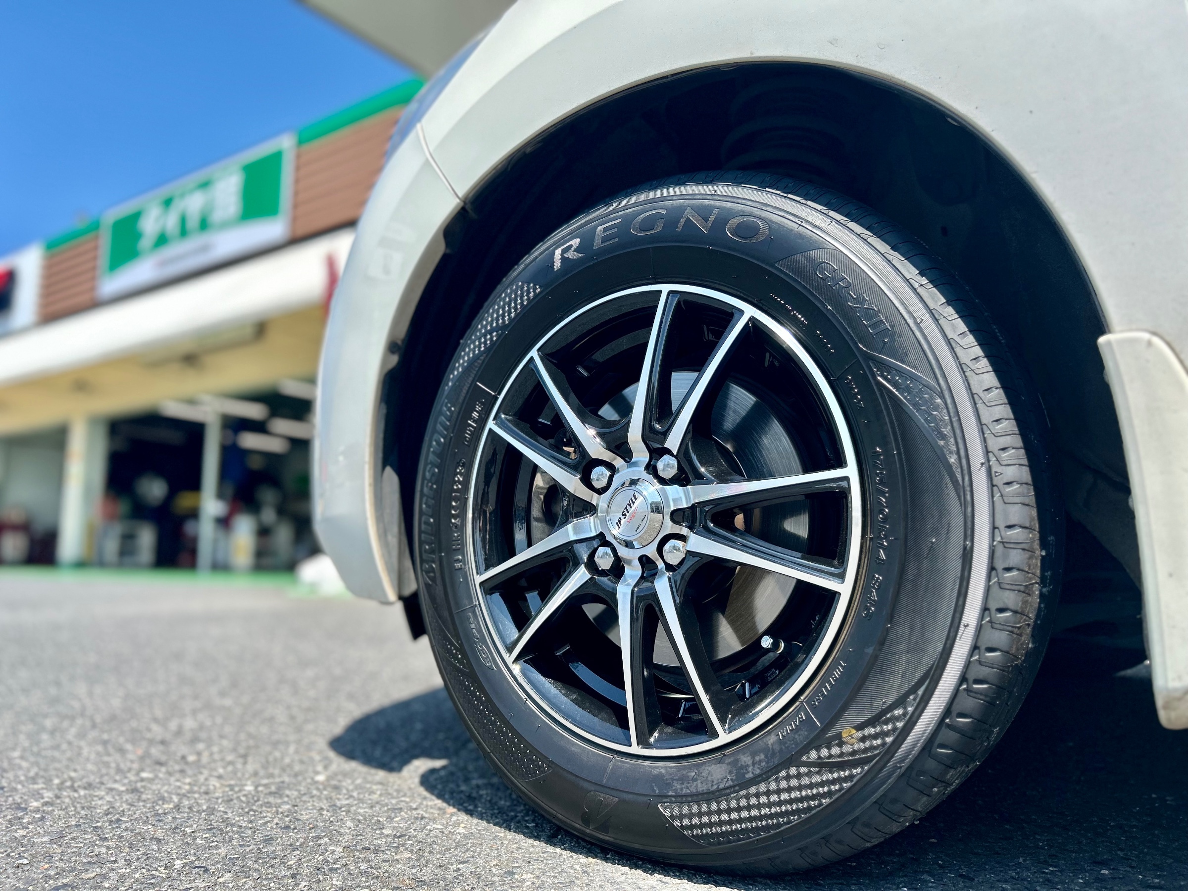 純正サイズの社外ホイールでしたら在庫で展示しているのもございますので、もしお気に入りのホイールがドンピシャサイズでしたら即取り付けが可能ですので一度ご覧にお越しになってみてはいかがでしょうか??