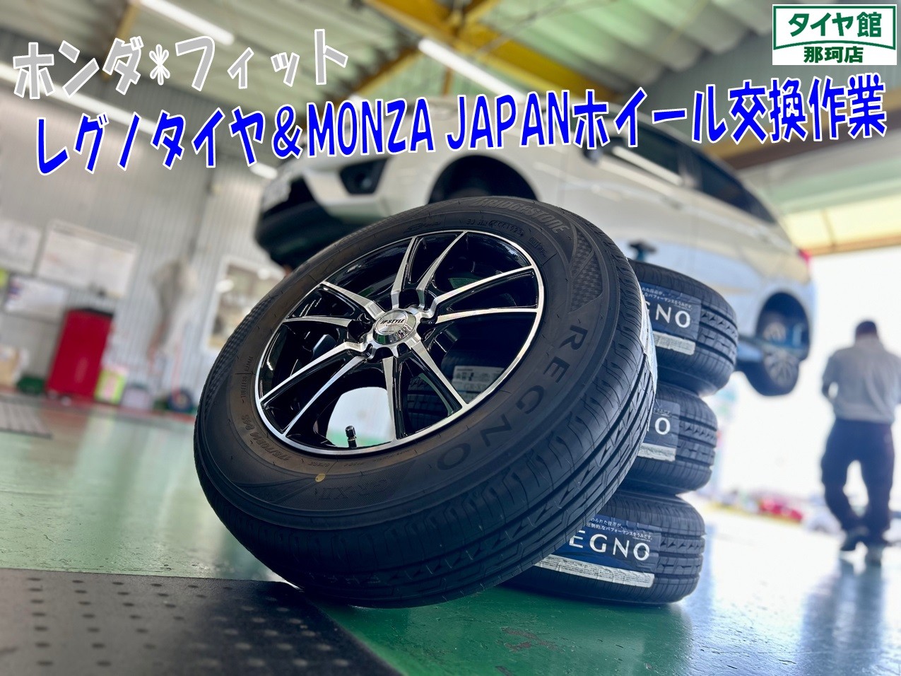 タイヤはレグノGR-XⅡ 175/70R14、ホイールはMONZA JAPAN JPスタイル ヴォーゲル 14x5.5 4/100 +50の組み合わせになります♪