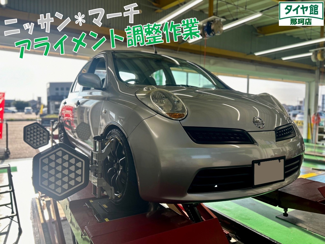 マーチのアライメント調整作業を行いました☆彡