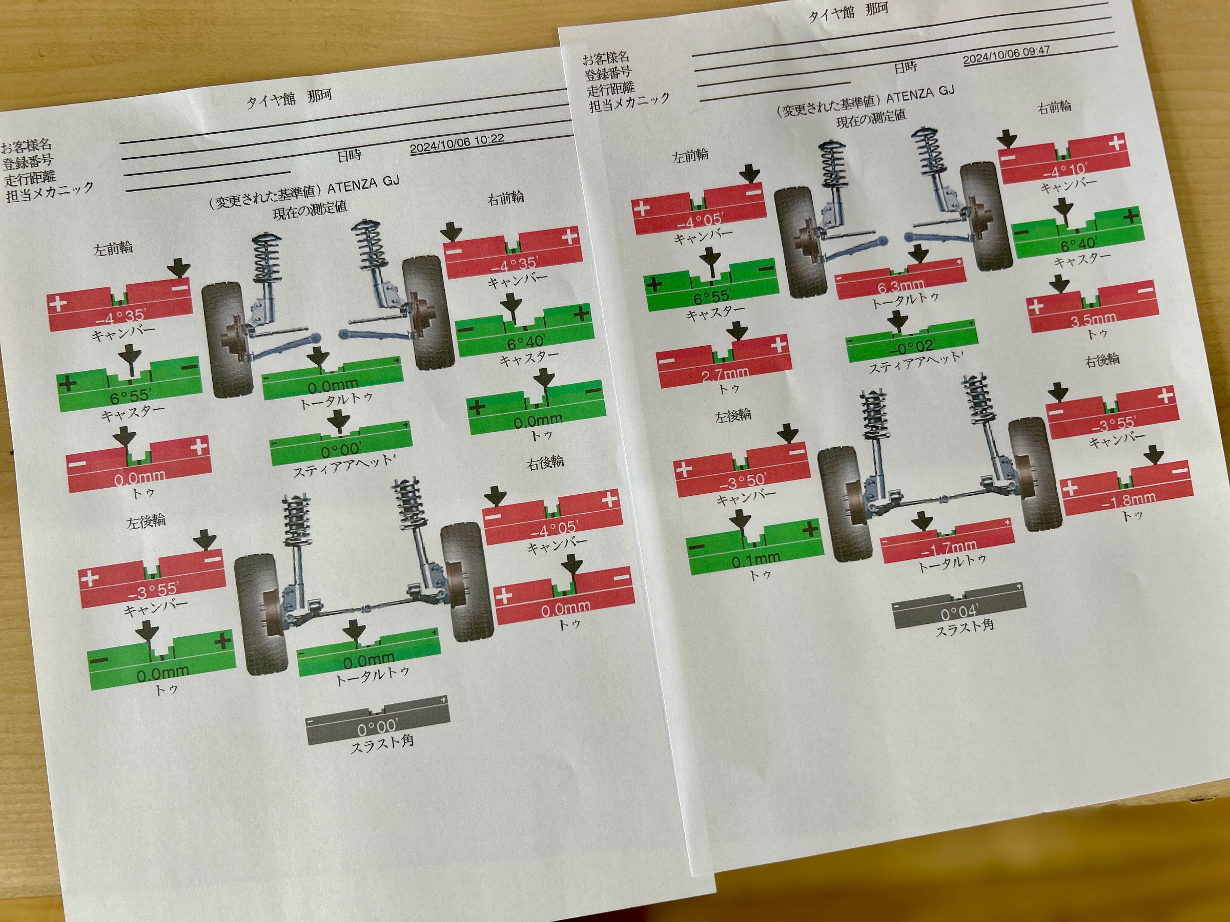 キャンバーが付いておりますのでトーは0で前後合わせました☆
