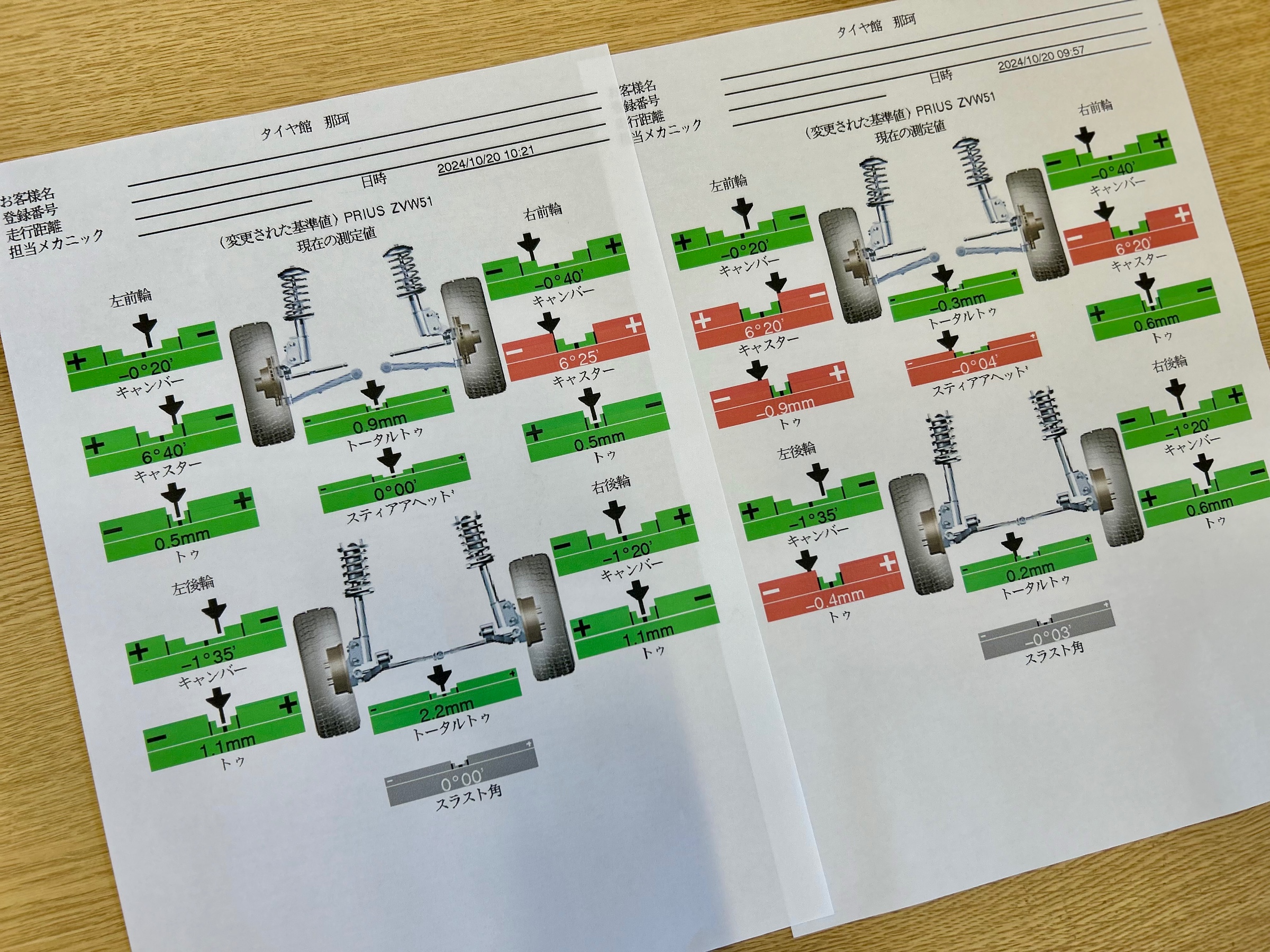 右側は基準値内に入っていましたがせっかくなので左側と同じ基準値ど真ん中になるように調整致しました♪