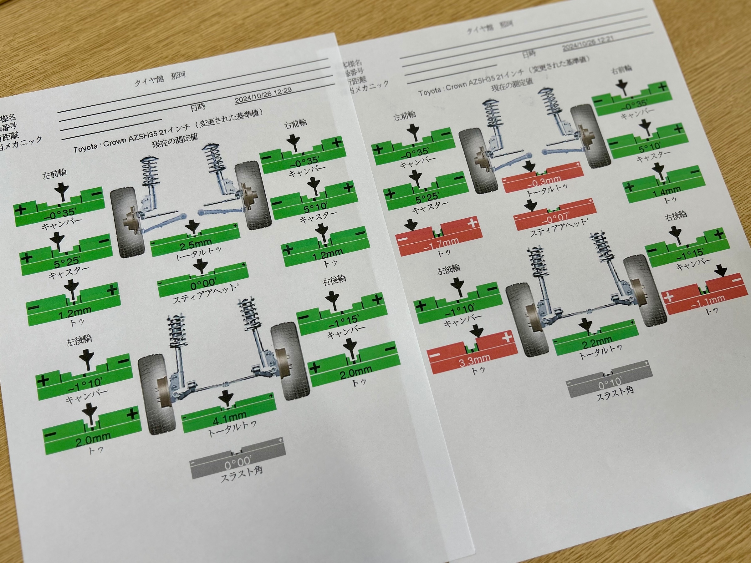 結果は思ったよりズレていましたので調整が付いています前後のトーを左右基準値に調整しまして完了‼