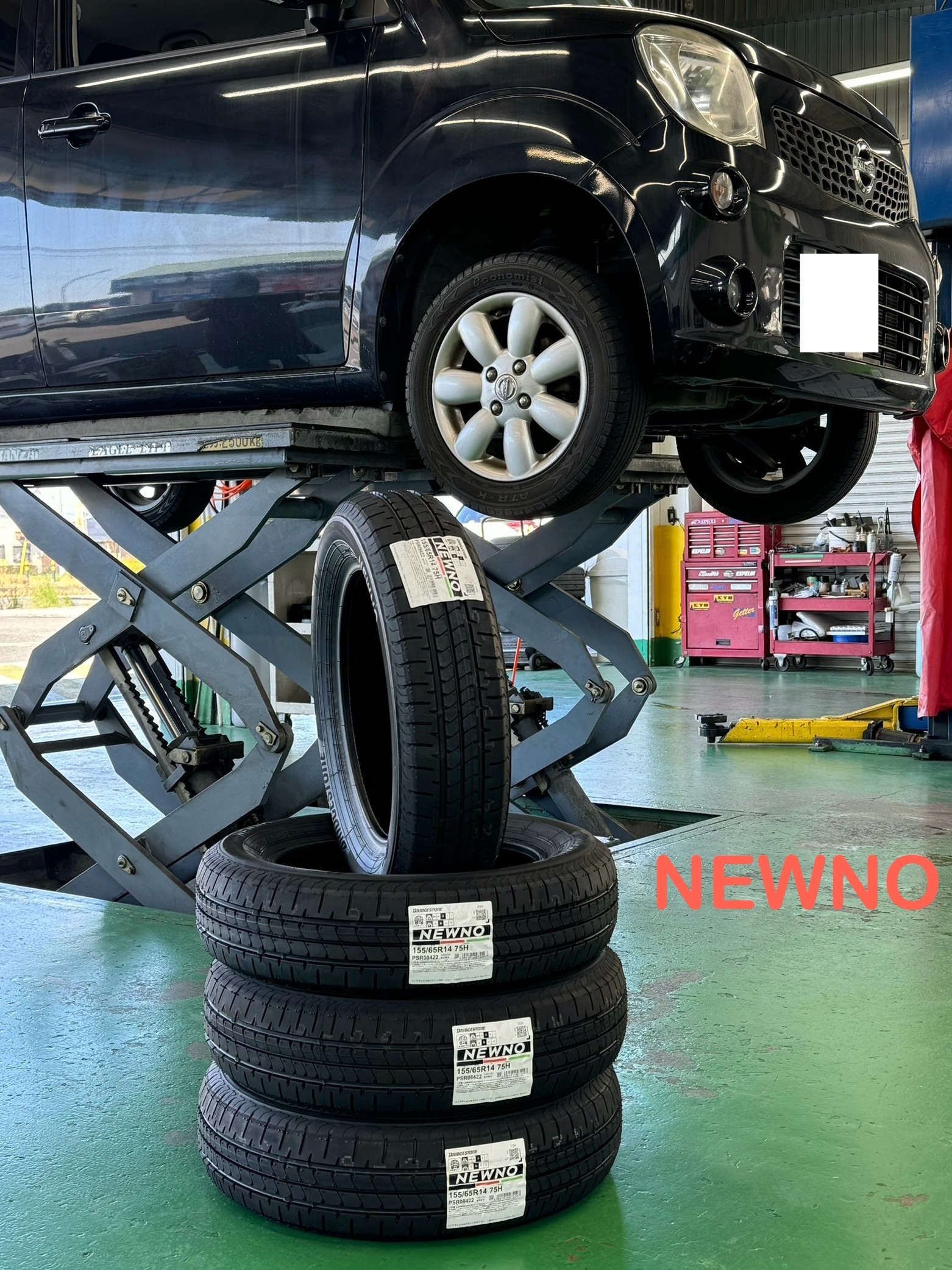 タイヤはBRIDGESTONE様のラインナップではお手頃価格のNEWNOになります。
