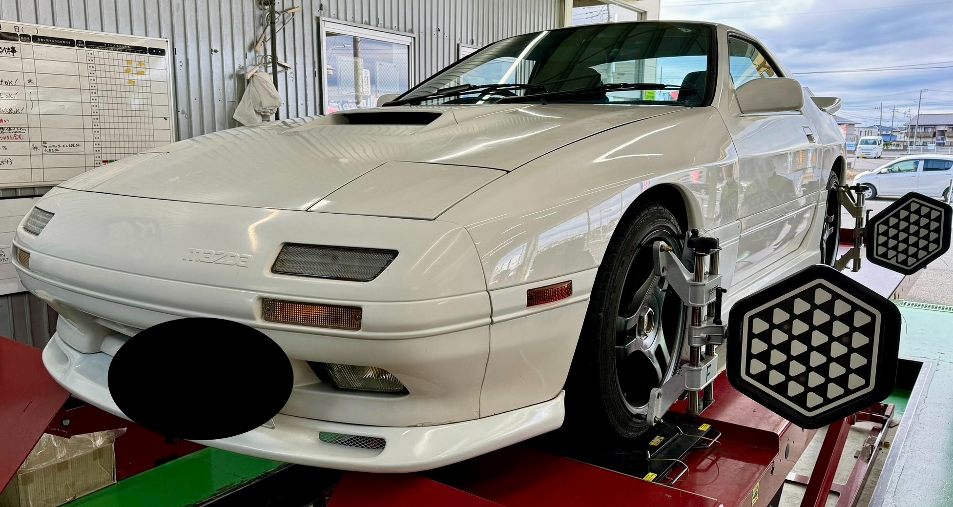 本日は某アニメでも超有名な!FC3Sのアライメント作業になります。