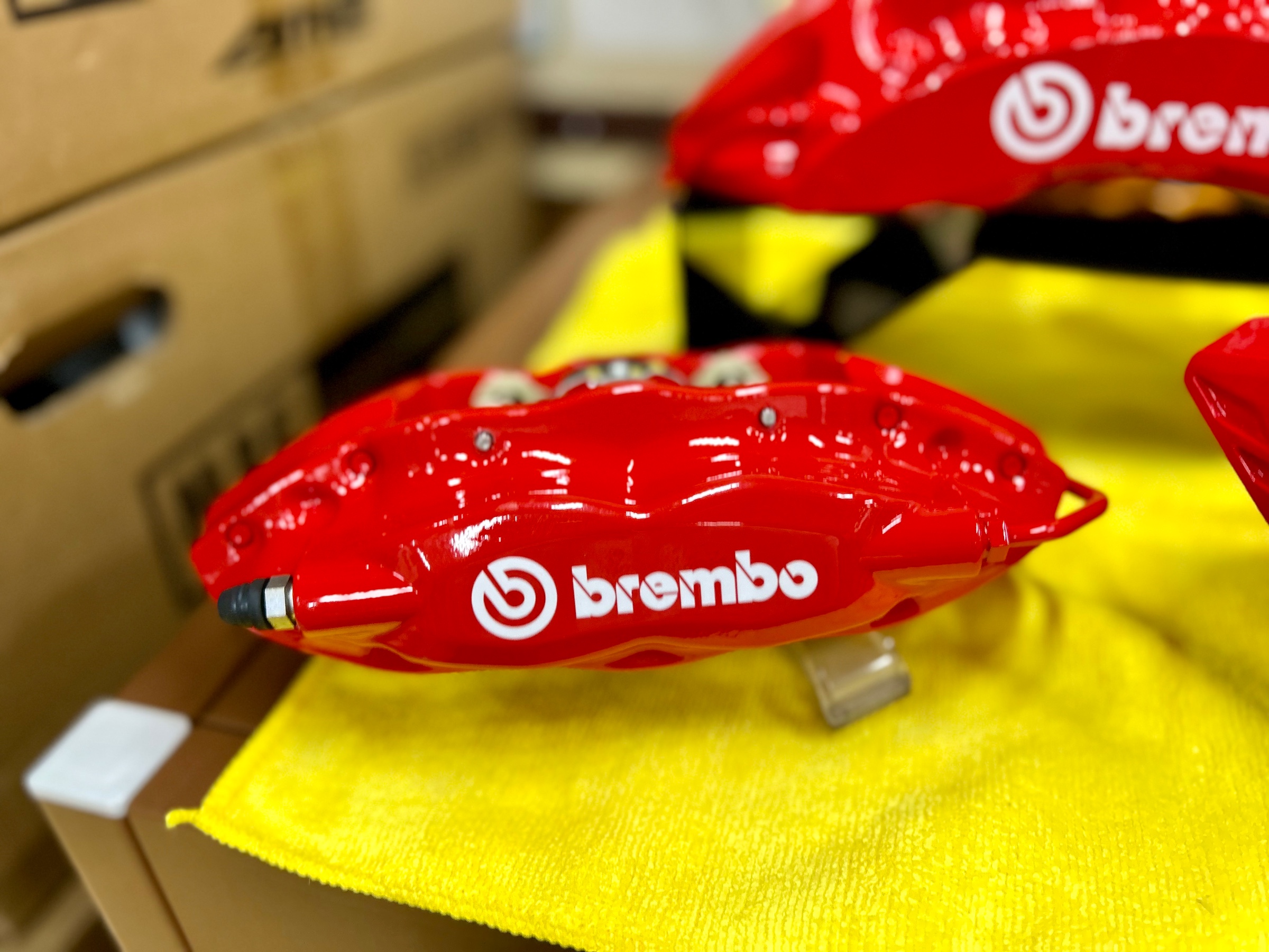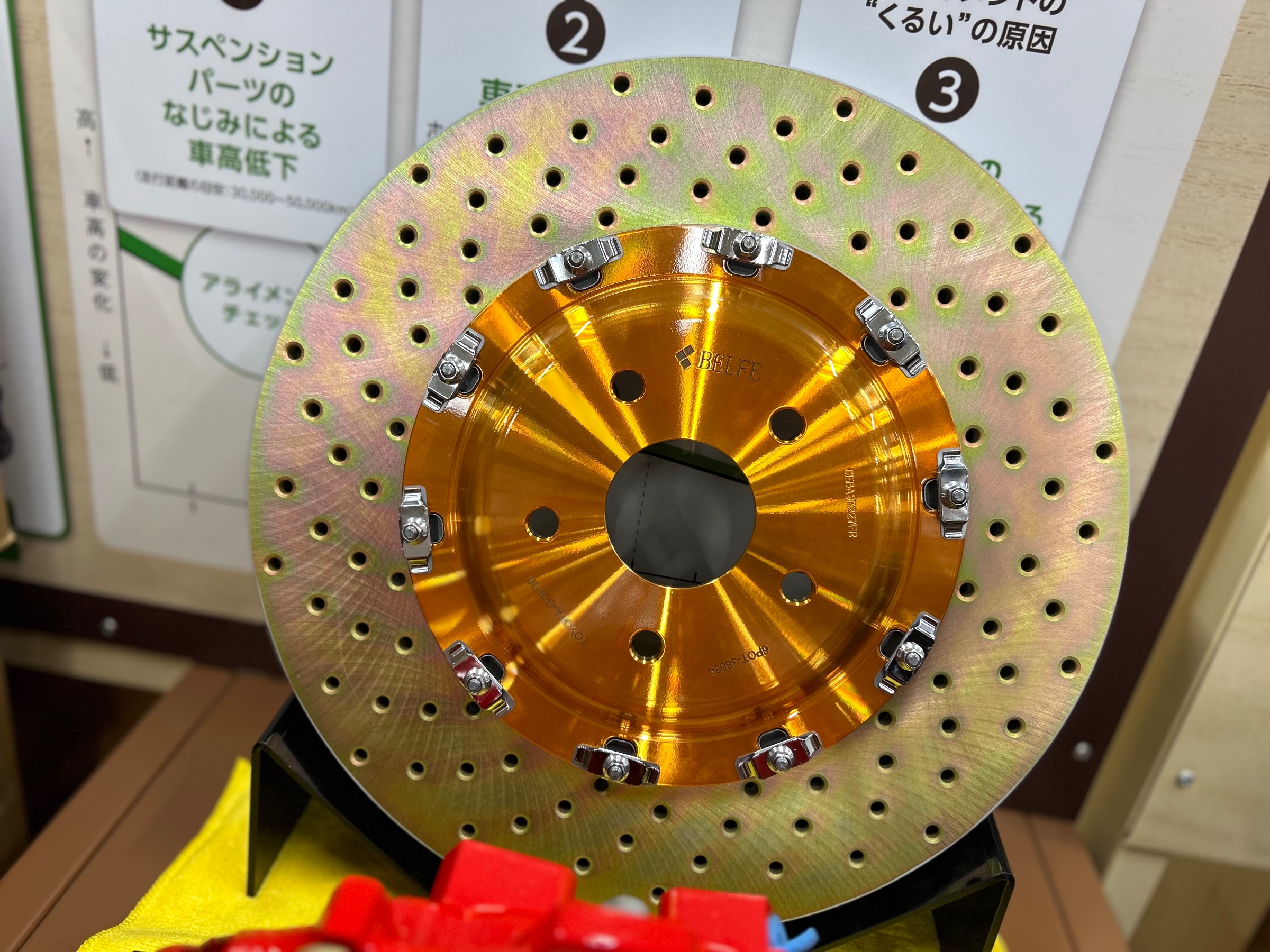 フロント用はBrembo製6ポットキャリパーと380φの2Pフローティング構造のドリルドローターのコ