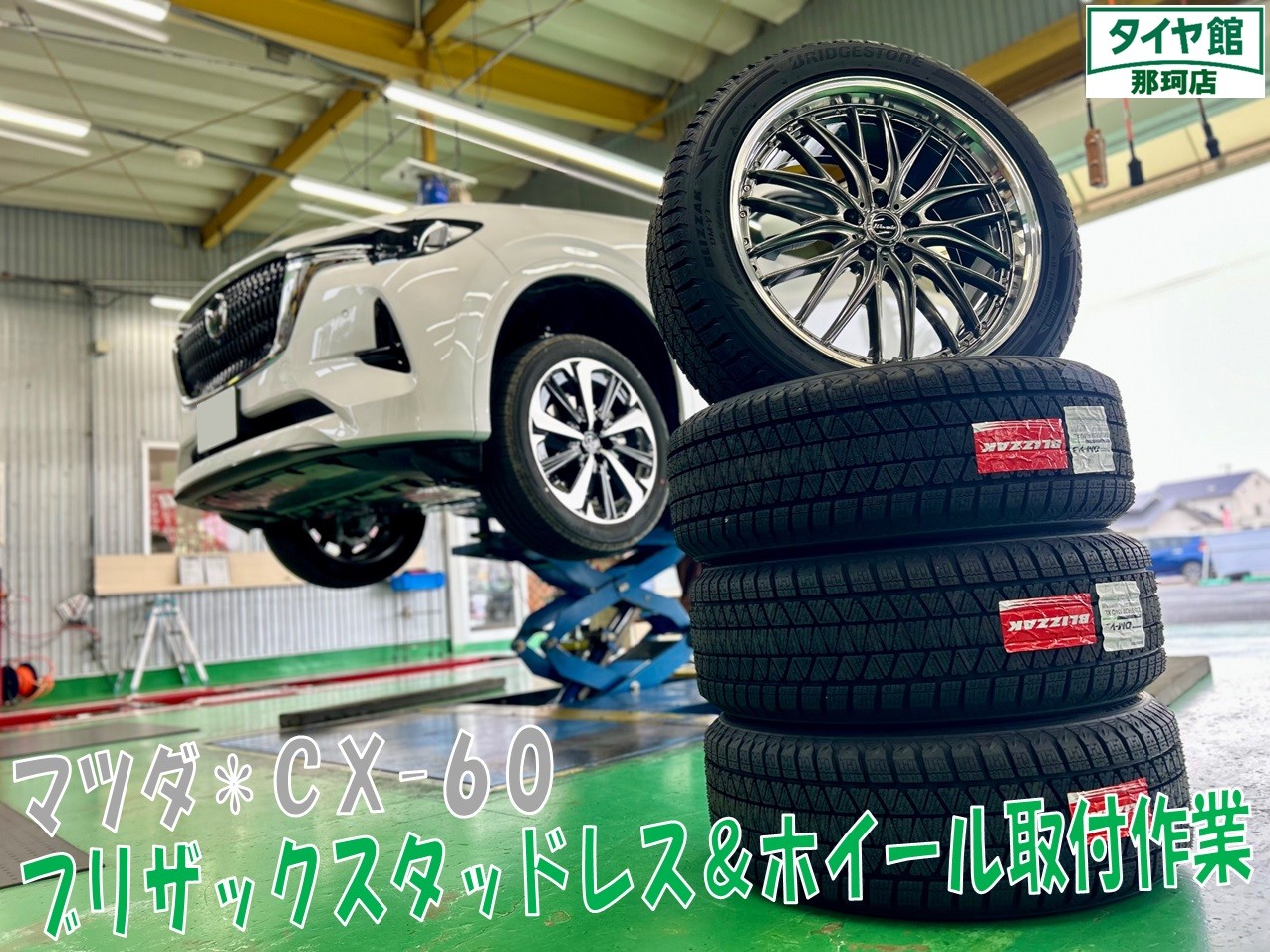 ご予約頂いておりましたCX-60にブリザックスタッドレス&ホイールの取付作業を行いました☆彡