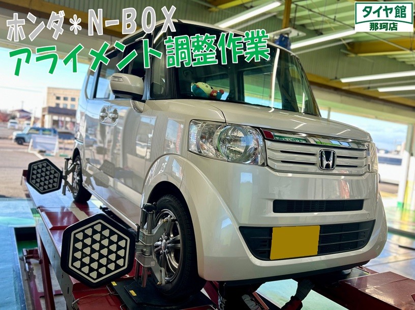 電話からのお問い合わせで作業ご予約頂きましたNーBOXのアライメント調整作業を行いました☆彡