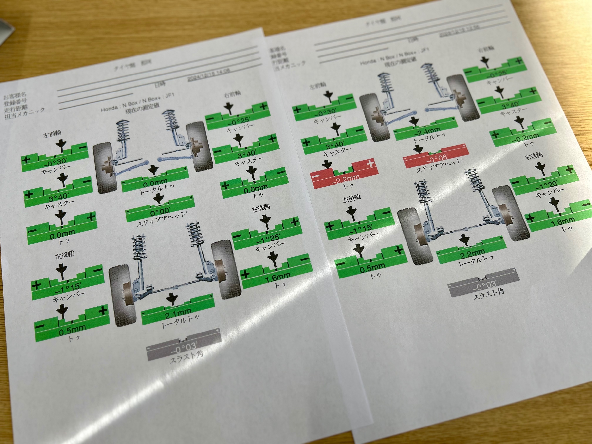 N-BOXアライメント調整作業