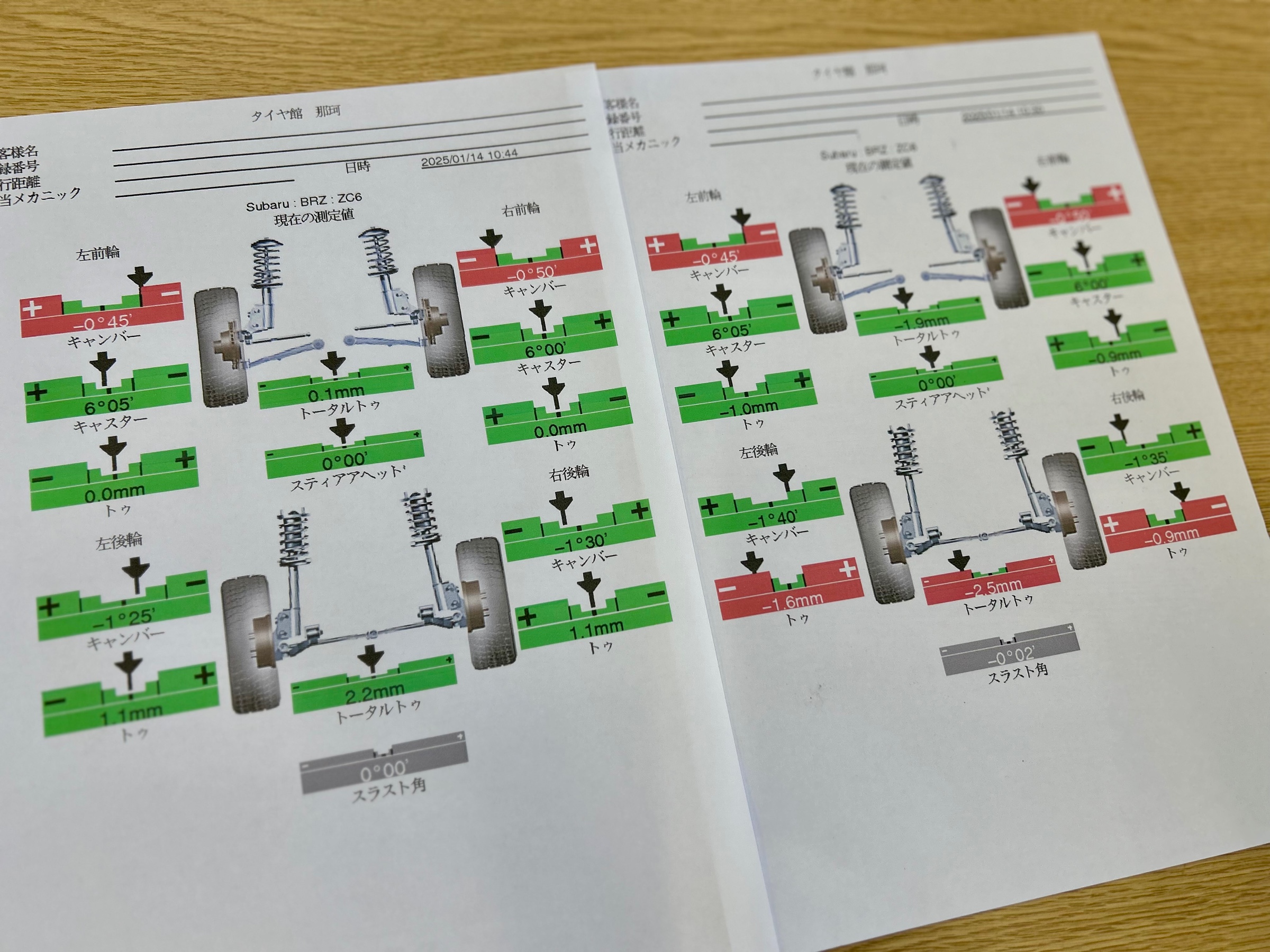 早速測定してみますと前後のトーがアウトになっていました。。。