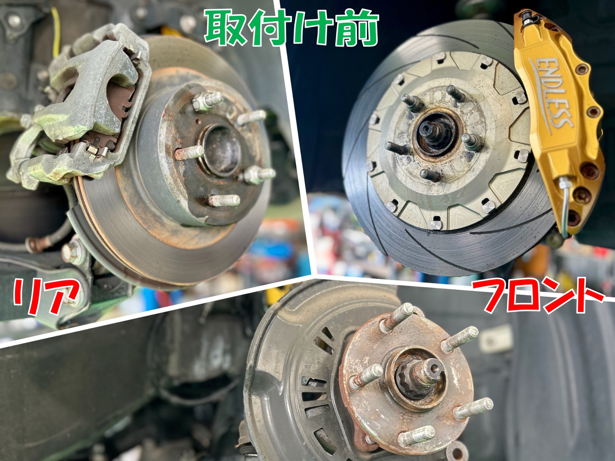以前在籍してましたタイヤ館つくば谷田部店の時にエンドレスキャリパーを取付けしていましたのでフロントは純正ベースではないですがこれらを全て外していきます♪