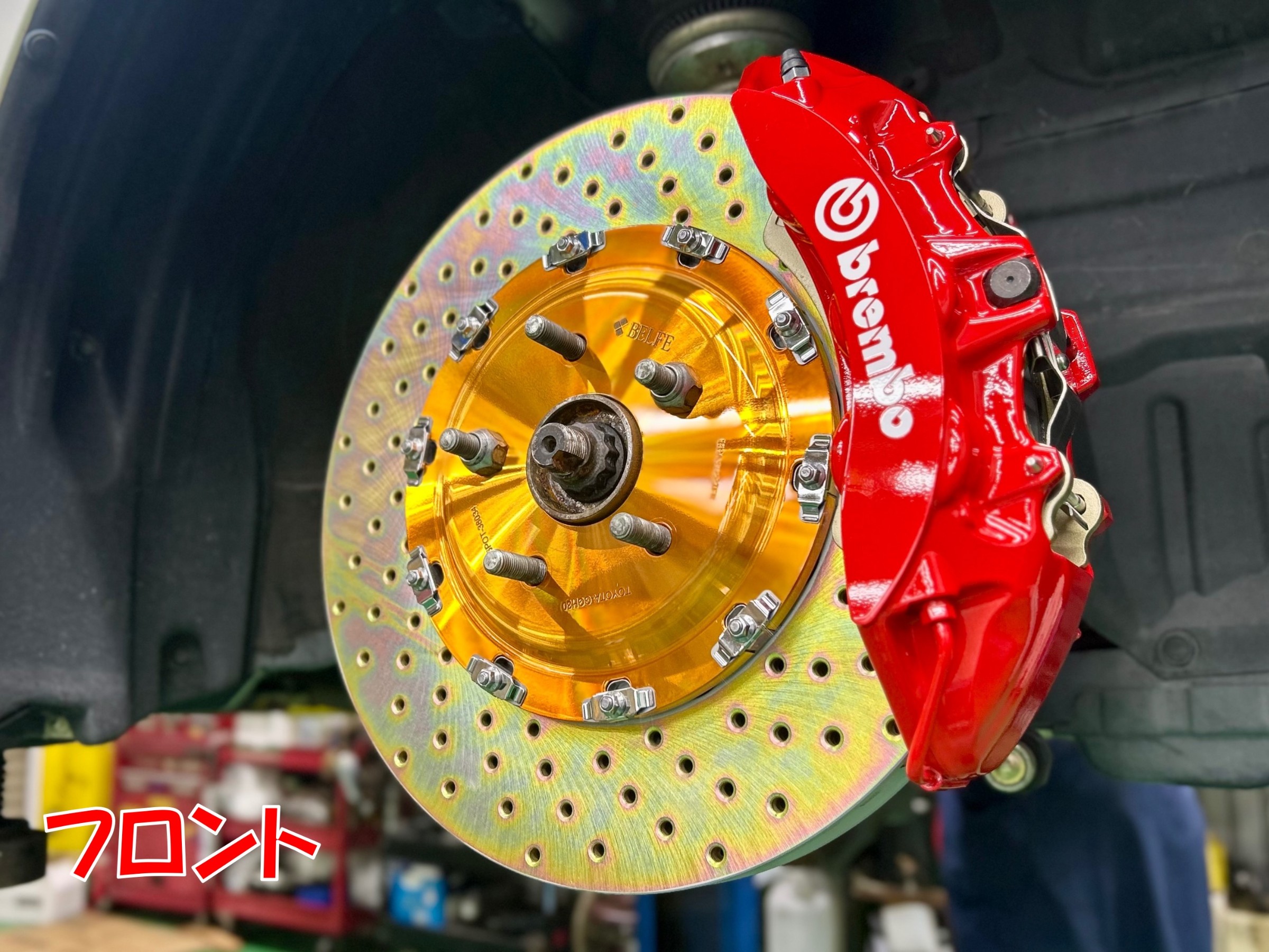 オプションでカラー変更をしまして、キャリパーはBremboらしいレッドにしディスクローターのベルハウジングはゴールドにしました♪