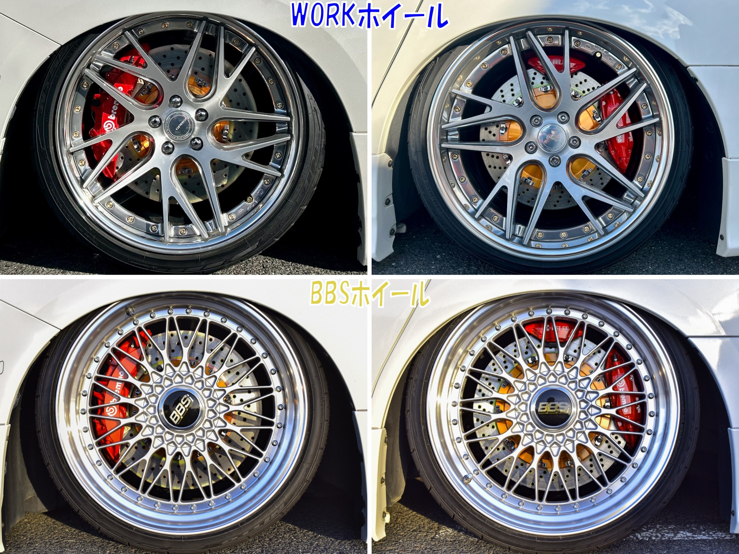 せっかくなので車検用のWORKホイールとメインのBBSホイールを比べてみましたがどちらもお似合いすぎです☆
