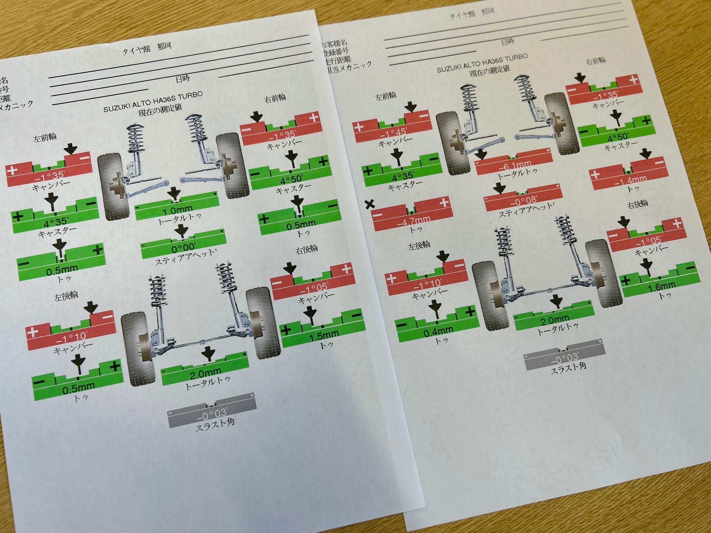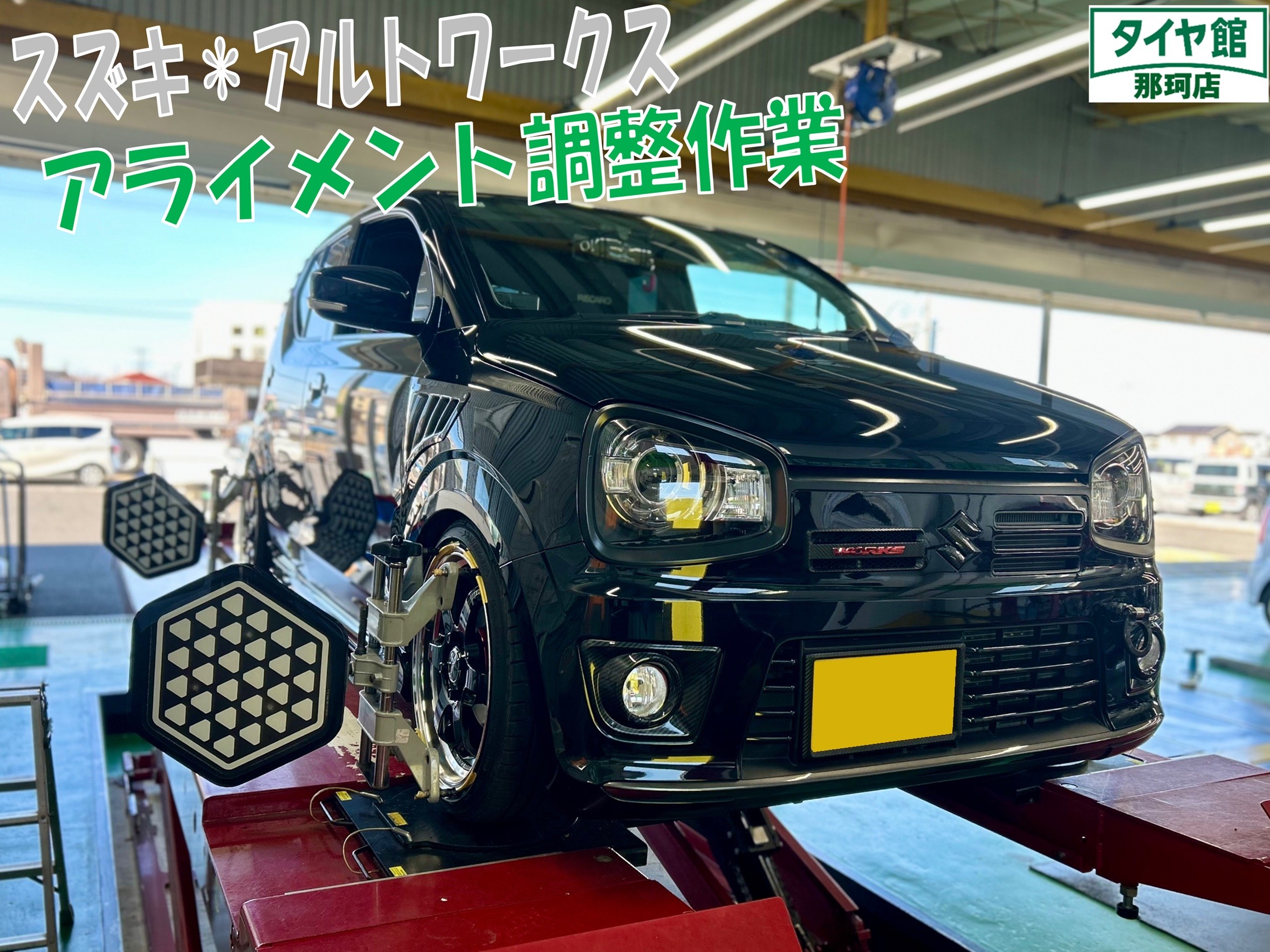 ご予約頂いておりましたアルトワークスのアライメント調整作業を行いました☆彡