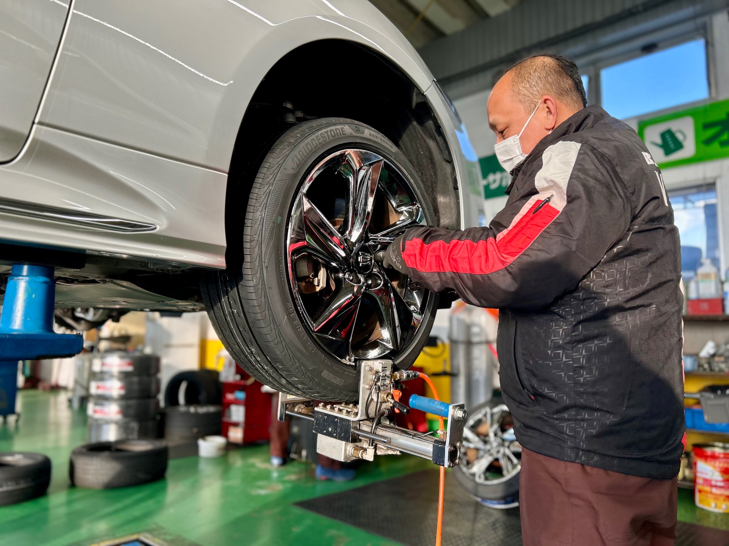 取付は当店お馴染みのセンターフィットマシーンでしっかり締め付けまで行いましたのでご安心してお乗り頂けるかと思います☆