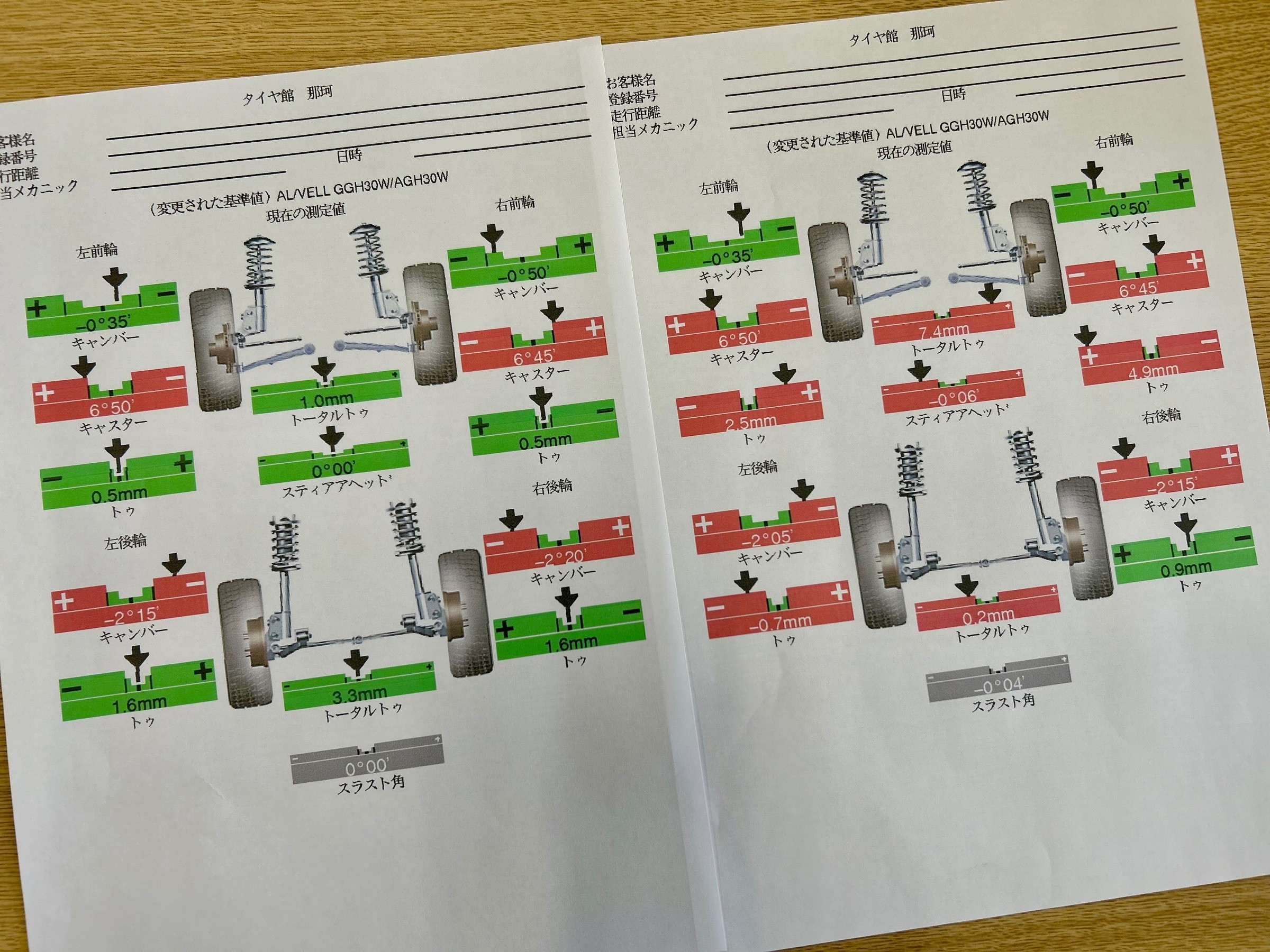 タイヤがロープロサイズではありませんのでタイヤの減りを考慮して基準値ど真ん中に合わせて作業終了♪