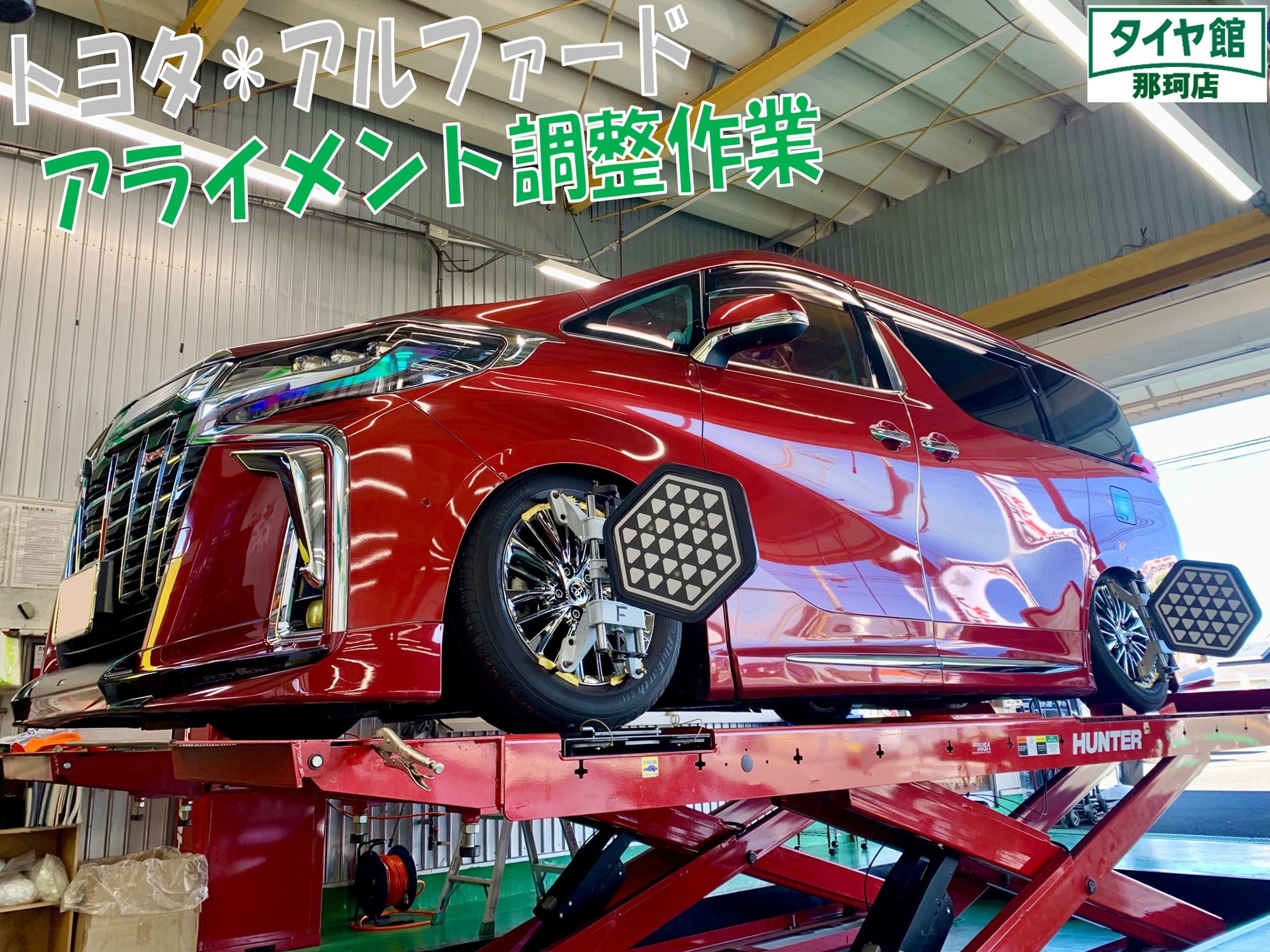 本日ご紹介させ頂く作業は、アルファードのアライメント調整になります♪