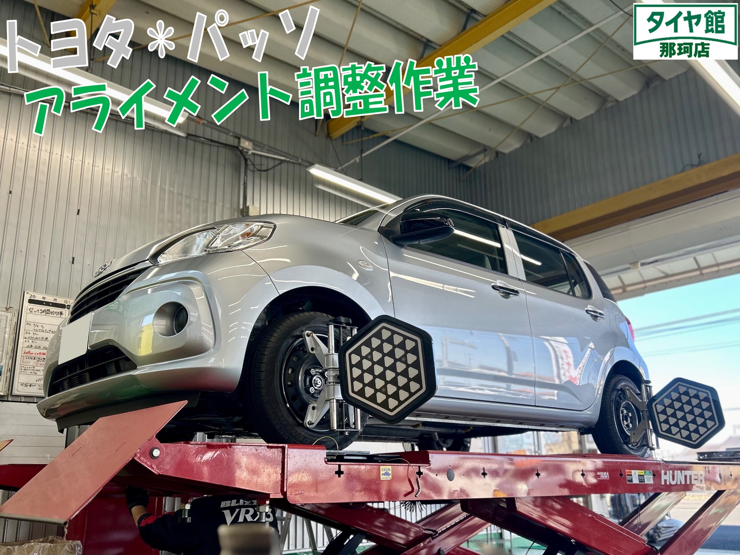 本日ご紹介させ頂く作業は、パッソのアライメント調整になります♪