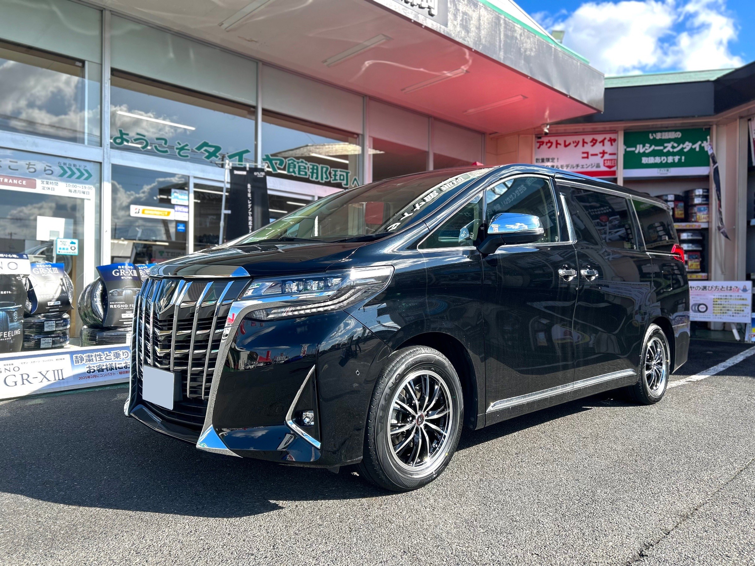 お車の靴(ホイール)がオシャレになり、タイヤは新商品のREGNO GR-XⅢ TYPE RVに変わりましたのでこの春ご家族で快適なドライブをお楽しみくださいませ☆