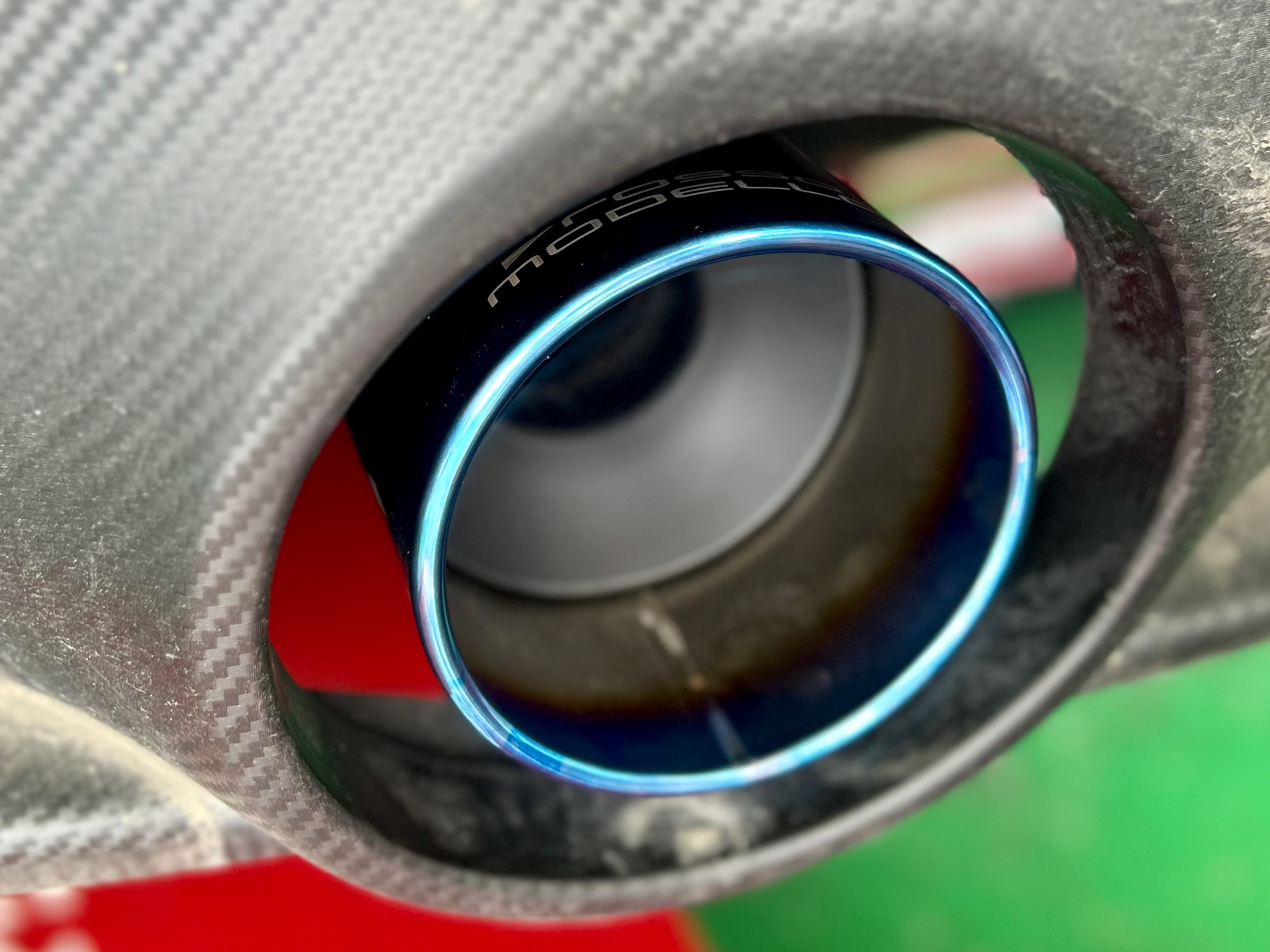 出口はマフラーカッターになっており、左右の見た目のズレを調整できます。お客様もこのくらいの差ならOKとご満足くださいました♪