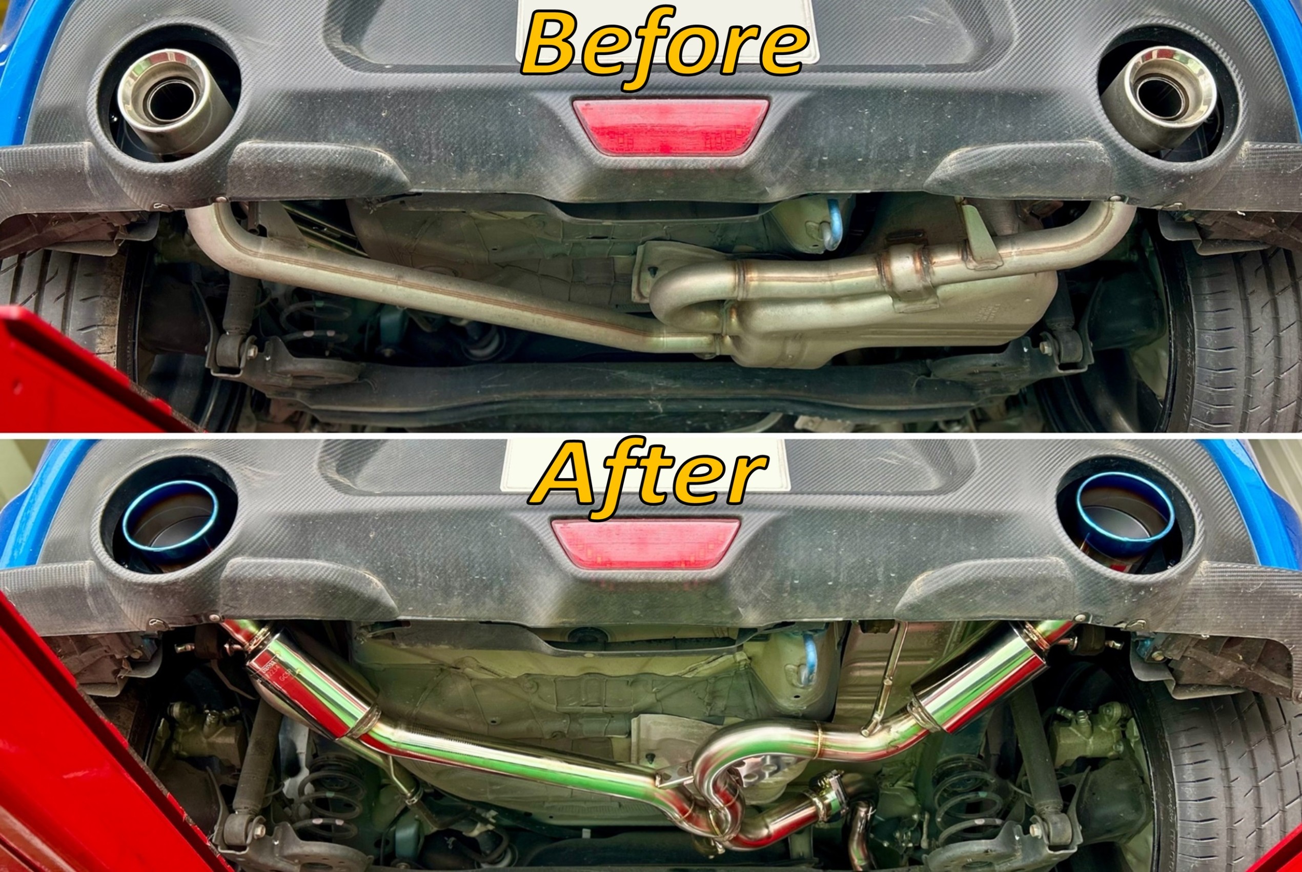 比較画像では、下回りがスッキリして、出口はチタンカラーでオシャレかつスポーティーに☆