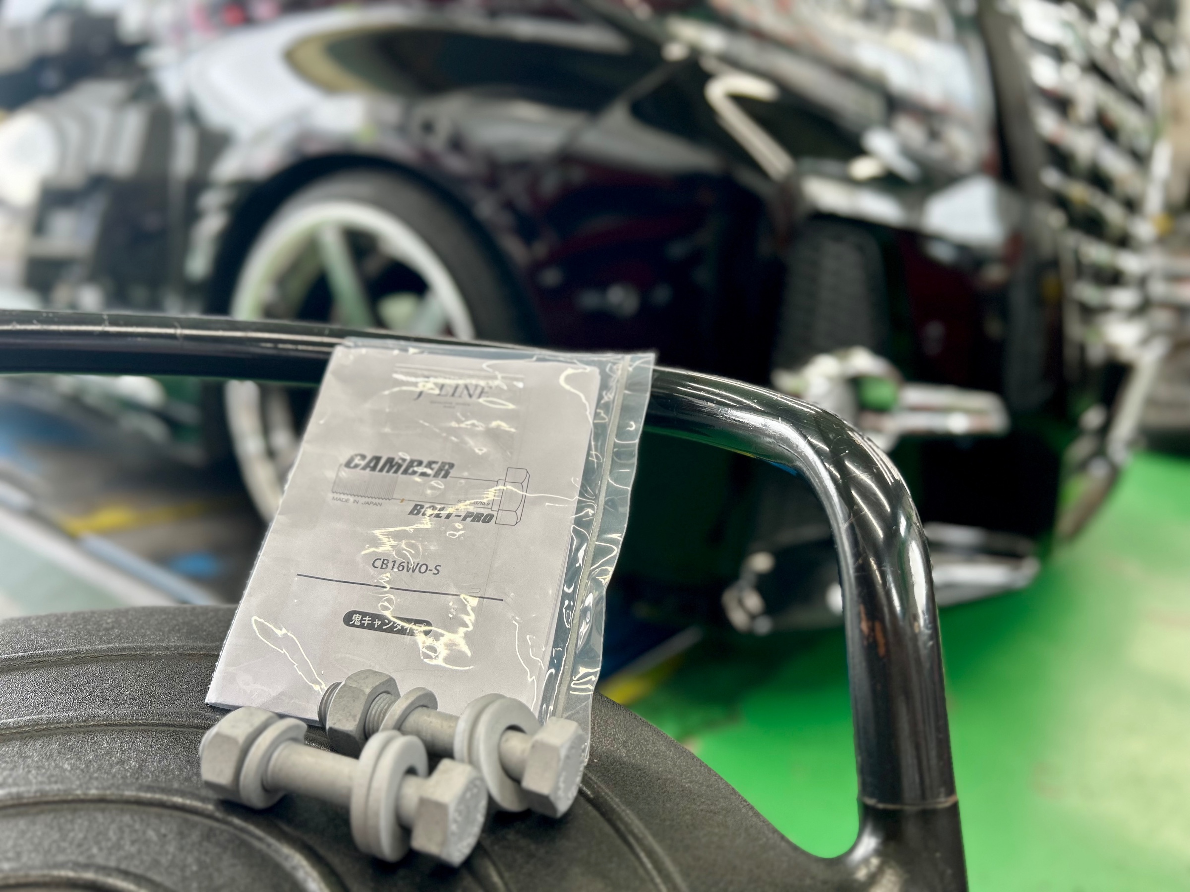 そこでJ-LINEキャンバーボルトを入れることによりキャンバーが起きた分またキャンバーを付けることができるのでタイヤホイールのはみ出し防止が出来ます☆