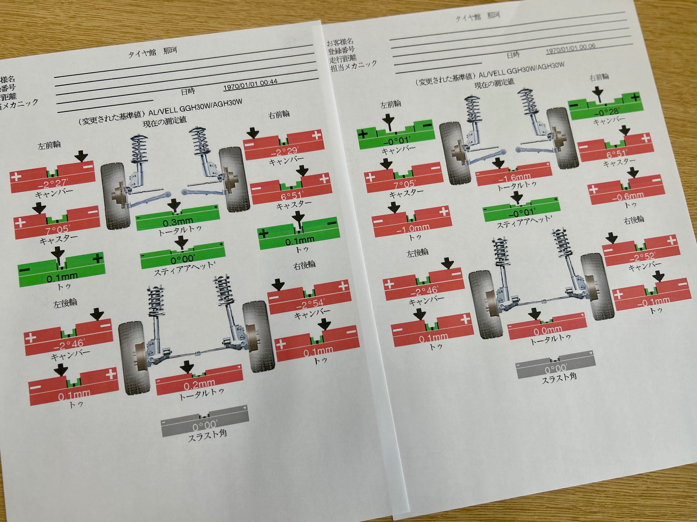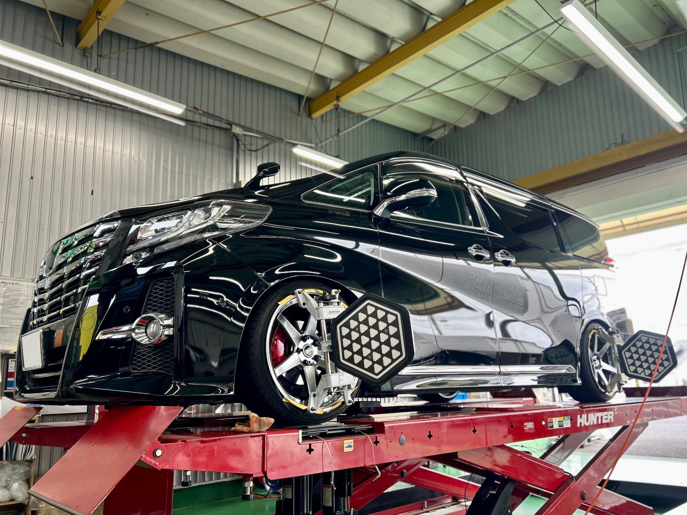 アルファード 車高調整・キャンバーボルト取付・アライメント調整作業