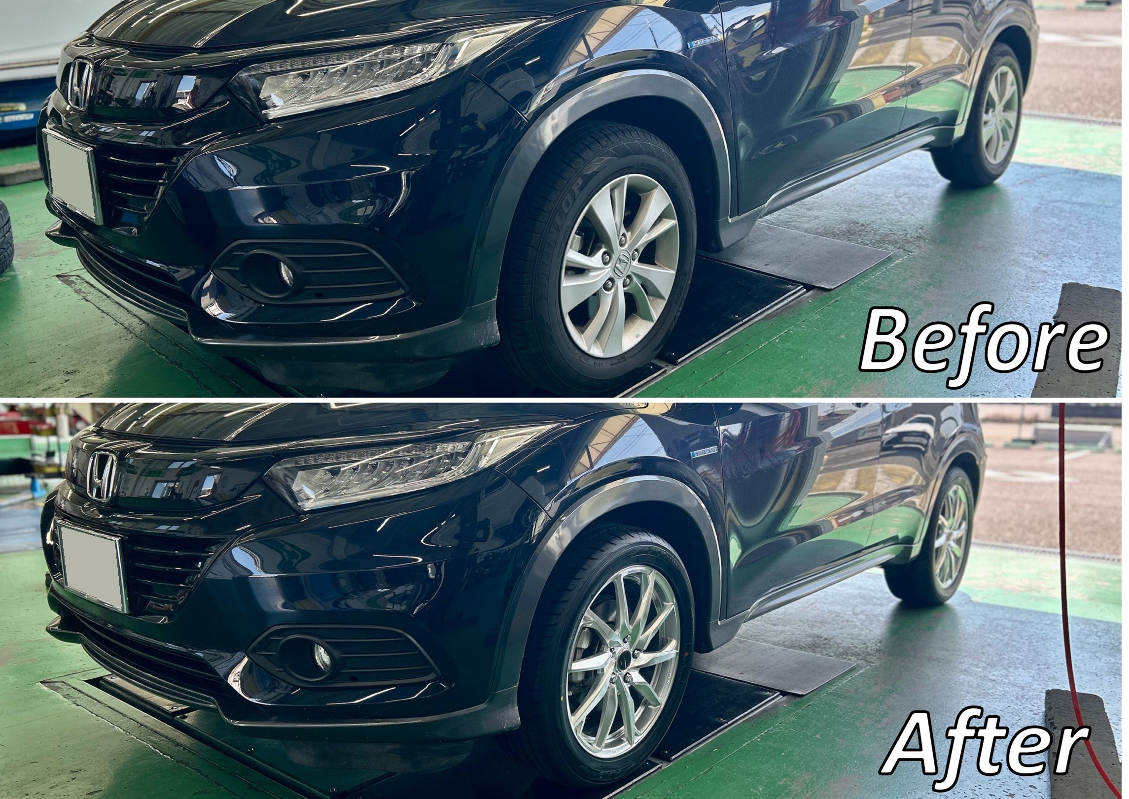 本日ご紹介させて頂く作業は、県南からはるばるお越しくださいましたヴェゼルのホイール取付になります♪