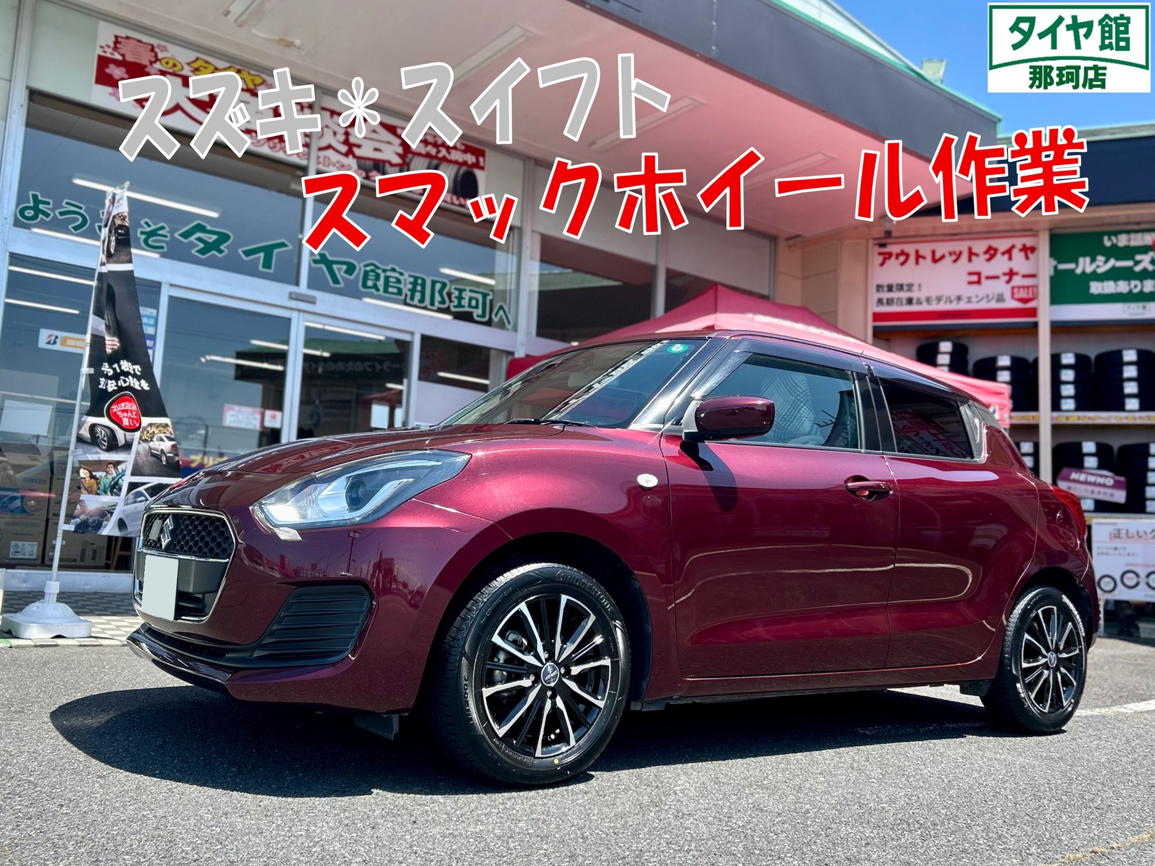 本日ご紹介させ頂く作業は、スイフトのタイヤ&ホイール取付になります♪