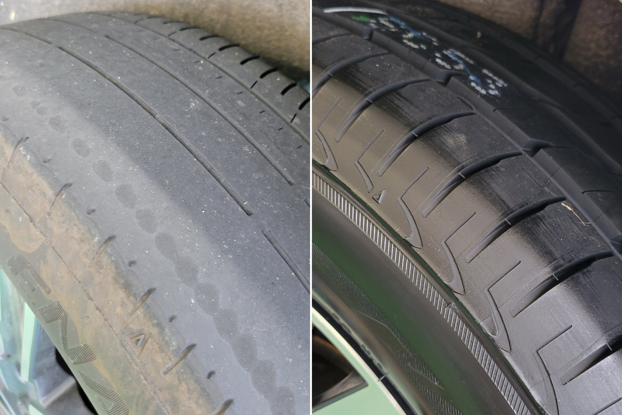 タイヤは限界を超えゴムの色が変わってきていました!