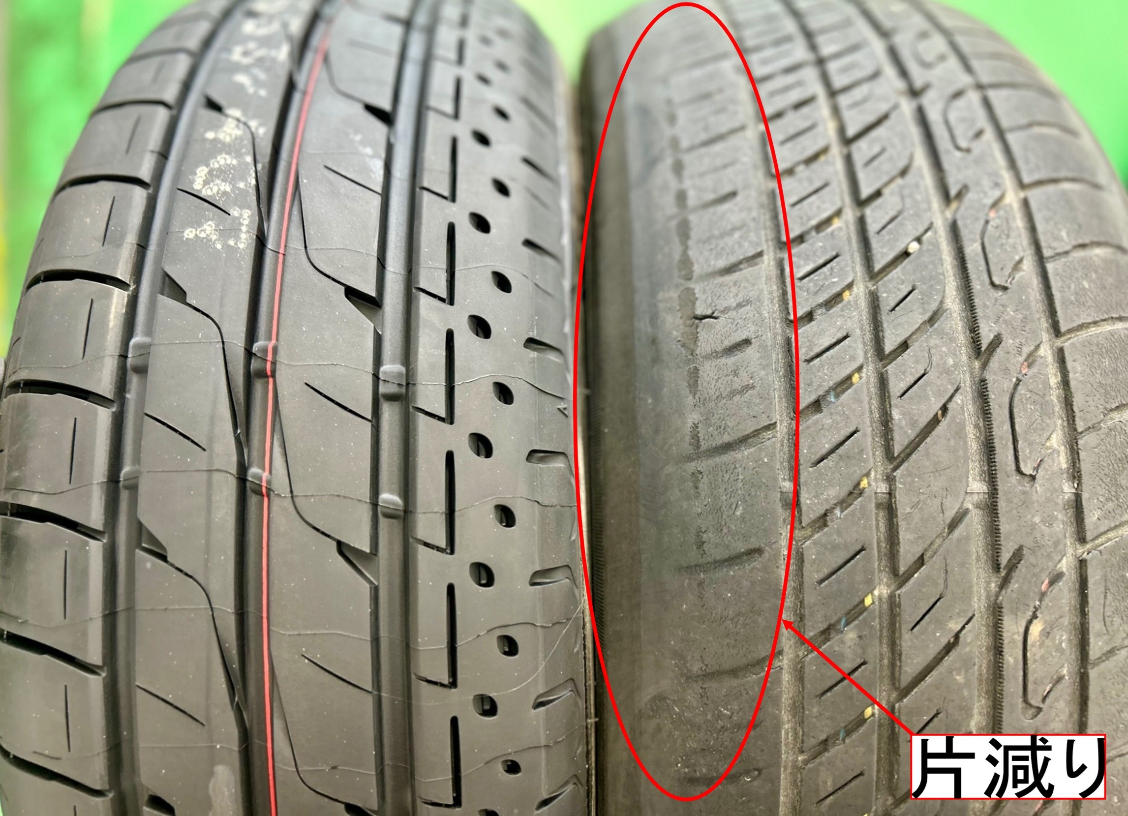 交換前はミニバン専用タイヤではなかったのでミニバン特有の外減りで先に外側の溝が減ってしまいました。。。