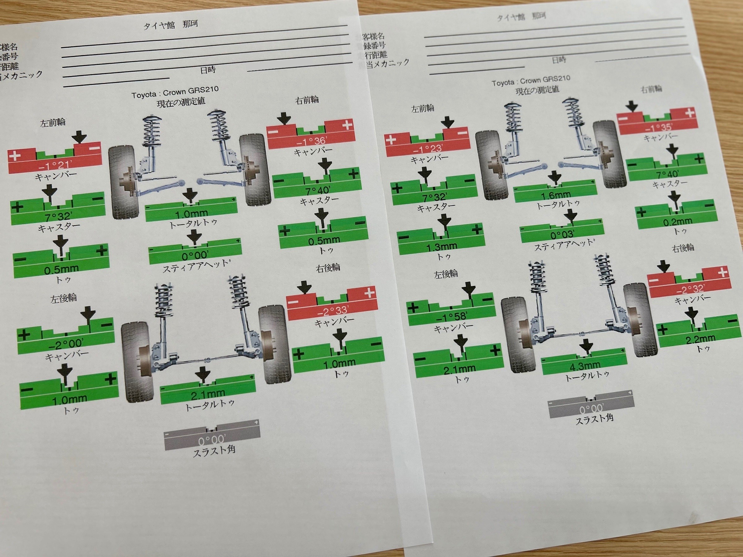 測定してみますと許容範囲には数値が収まっておりましたが、左右の数値はバラバラに。。。