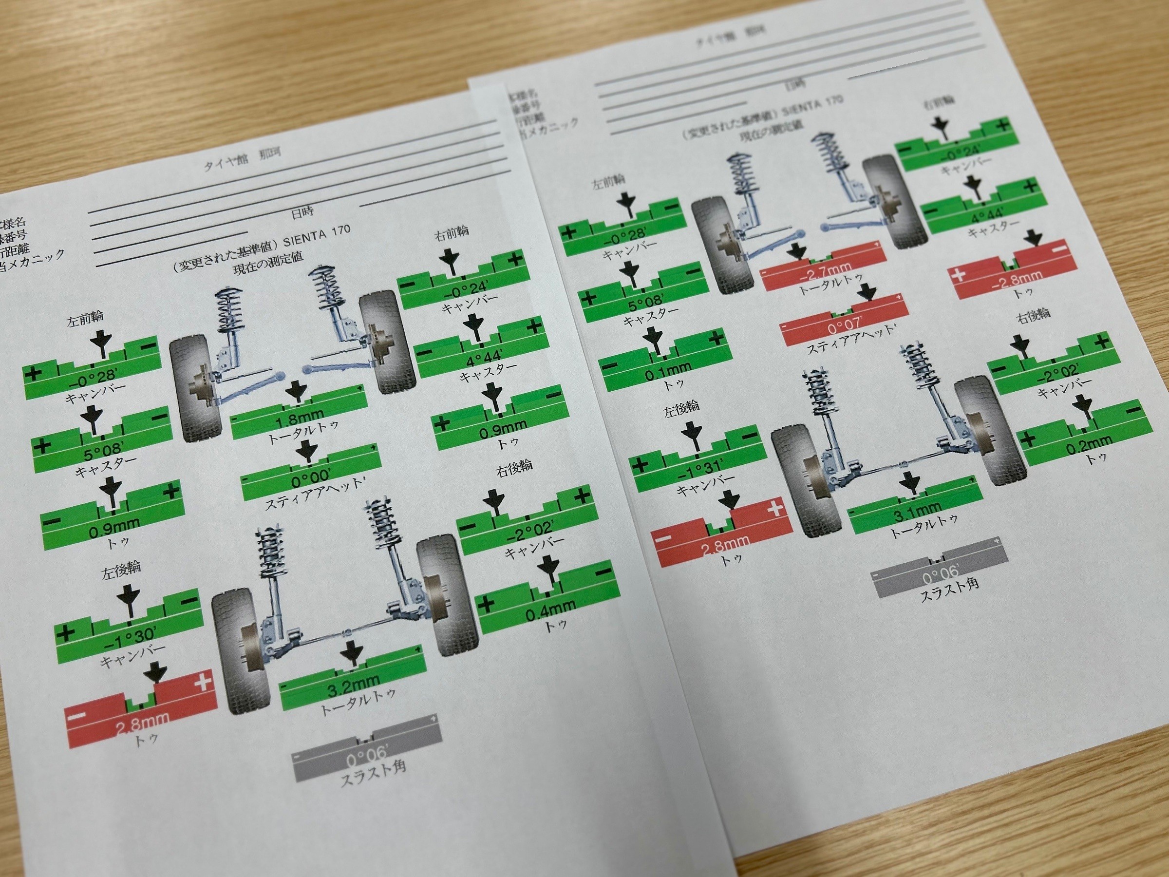 シエンタ アライメント調整作業
