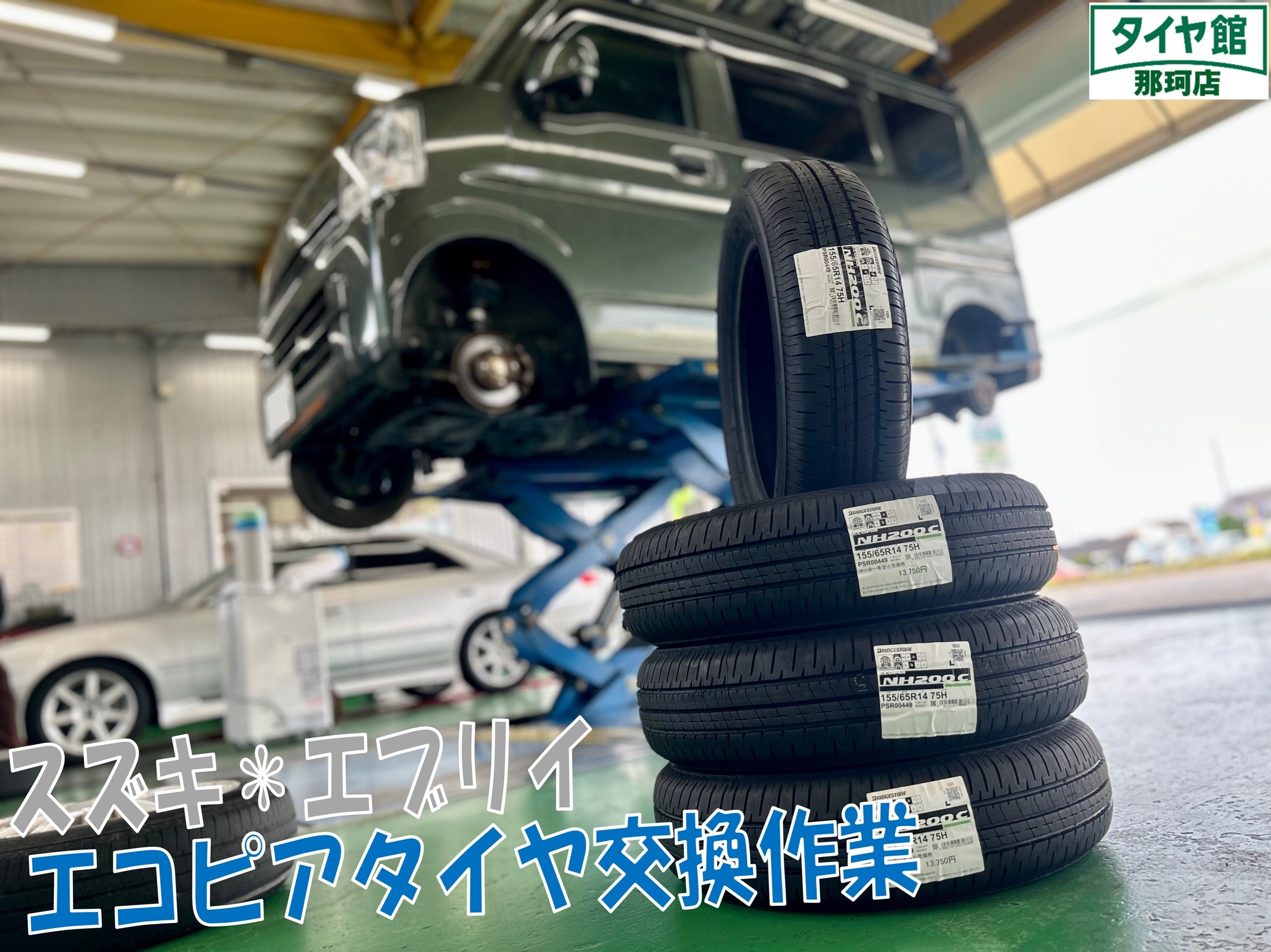 本日ご紹介させて頂く作業は、日頃お世話になっております事業所様からご紹介頂きましたエブリイのタイヤ交換作業になります♪