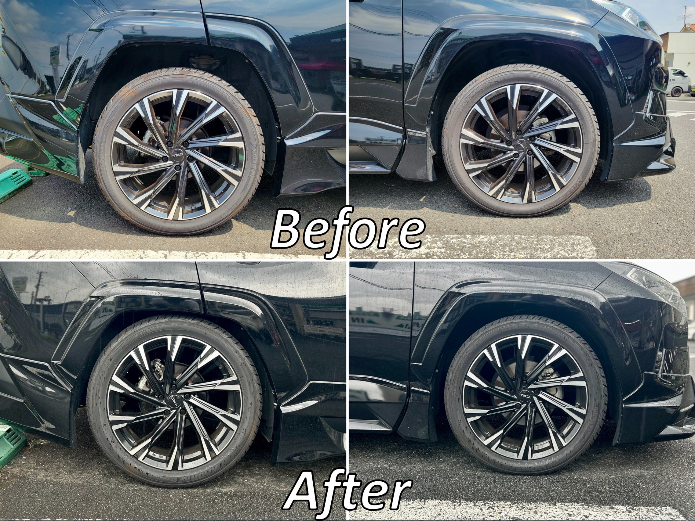 更に拡大してみますとタイヤとフェンダーの隙間がかなり変わったことが分かるかと思います♪