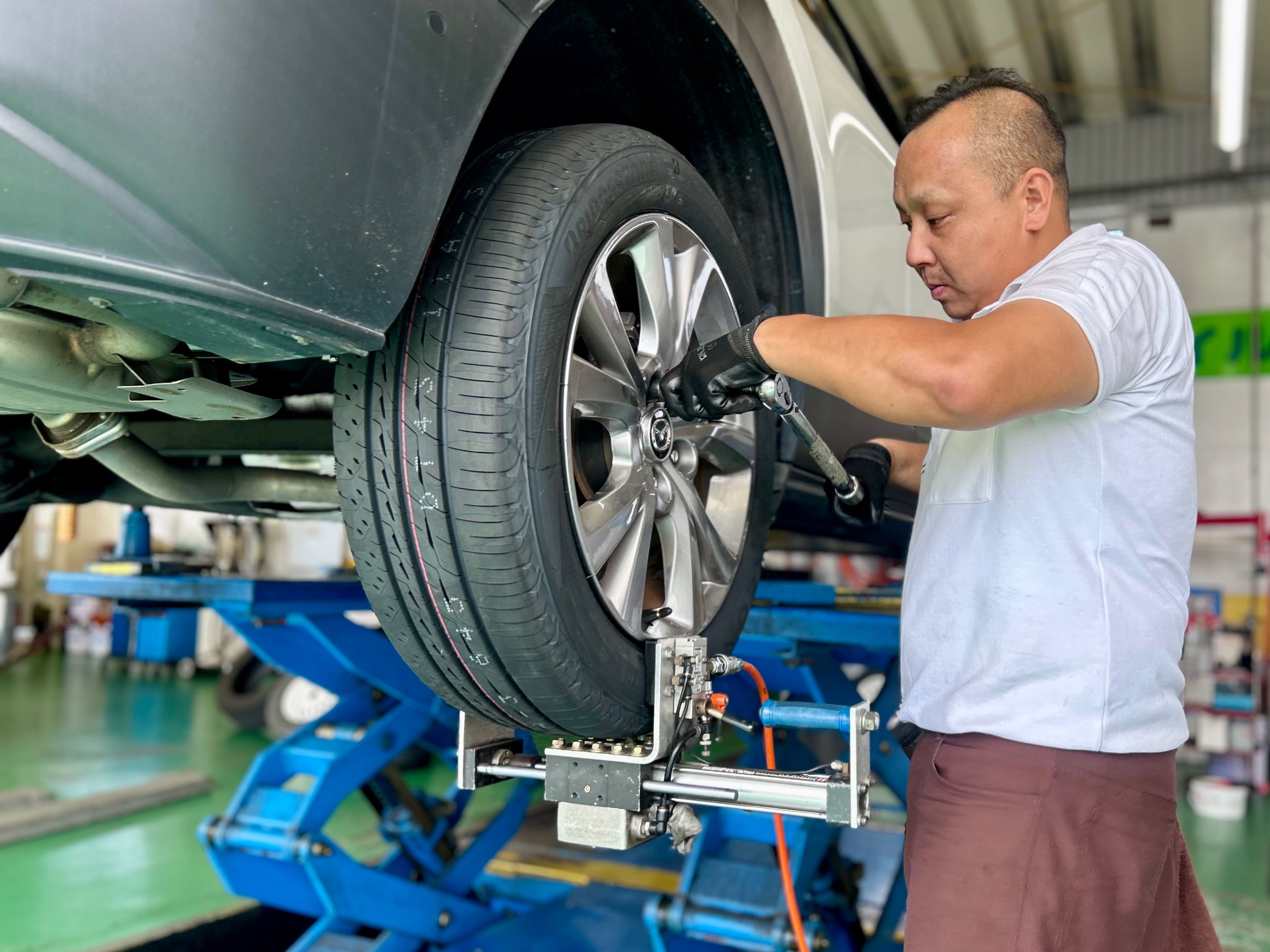タイヤを車軸の真ん中に取り付けると、走行中のクルマの振動が軽減され、さらにハンドリングや直進安定性、コーナリング性能の向上にも貢献。つまり、ドライブがもっと快適で楽しくなる取付作業です。一般的な取り付け方法より、作業時間が際立って長くなることはなく取付が出来ます♪