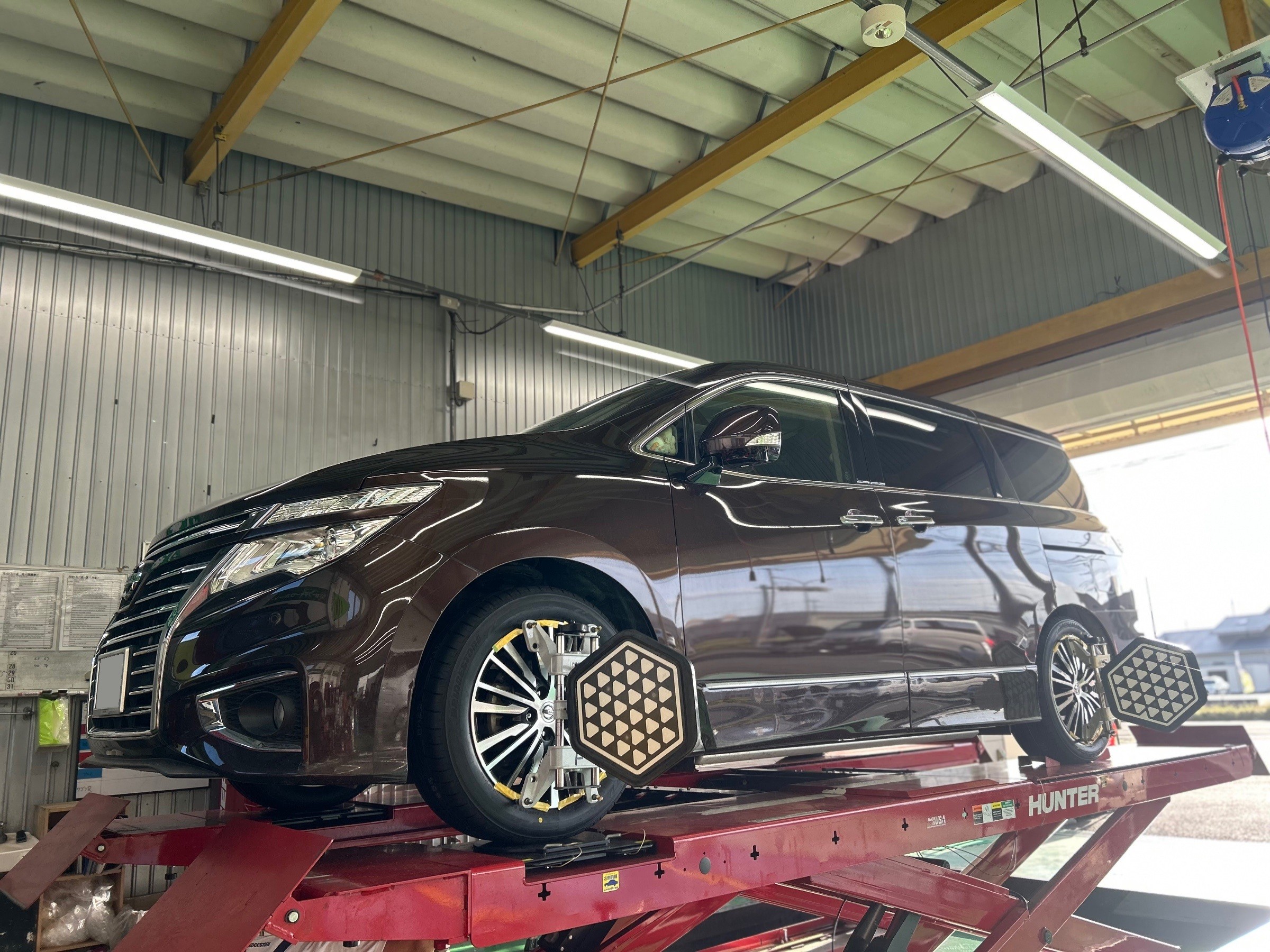 本日ご紹介させて頂く作業は、ご予約頂いておりましたエルグランドのサマータイヤ交換&アライメント調整作業になります♪