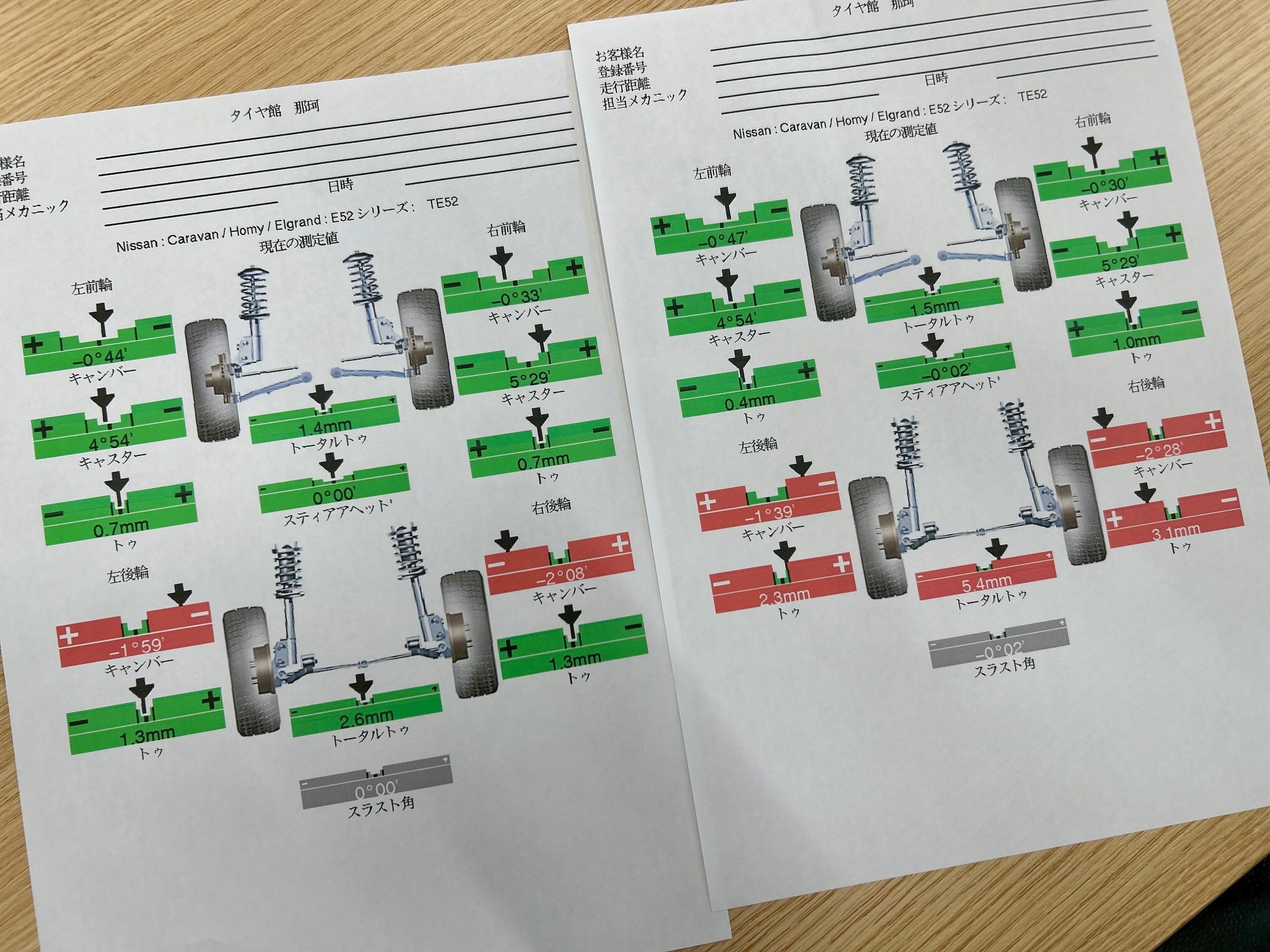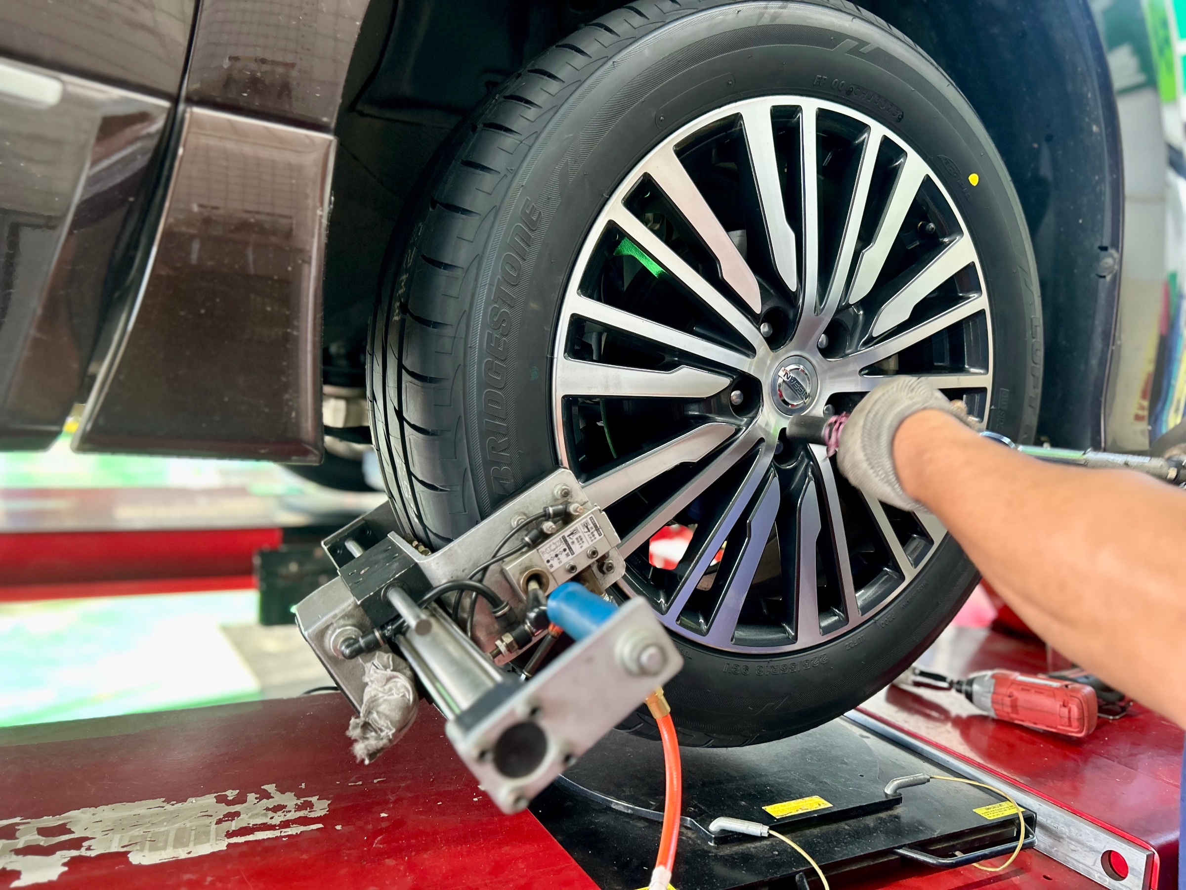 エルグランド ルフトRVⅡタイヤ交換作業&アライメント調整作業