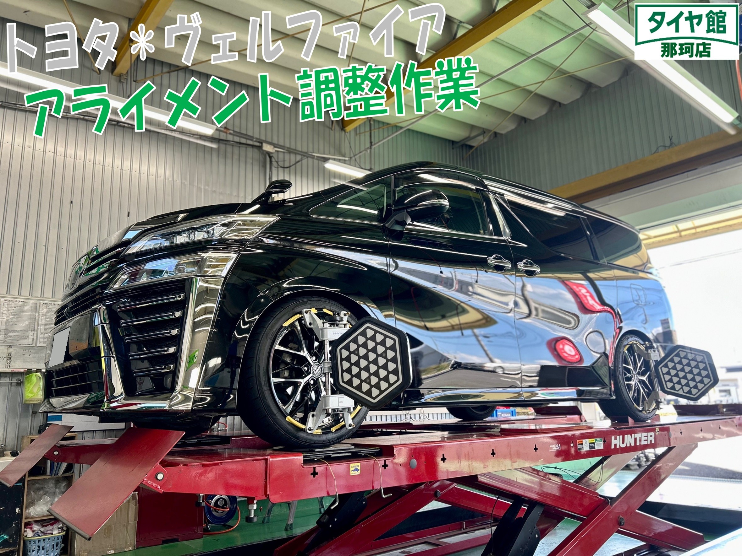 本日ご紹介させて頂く作業は、ヴェルファイアのアライメント調整作業になります♪