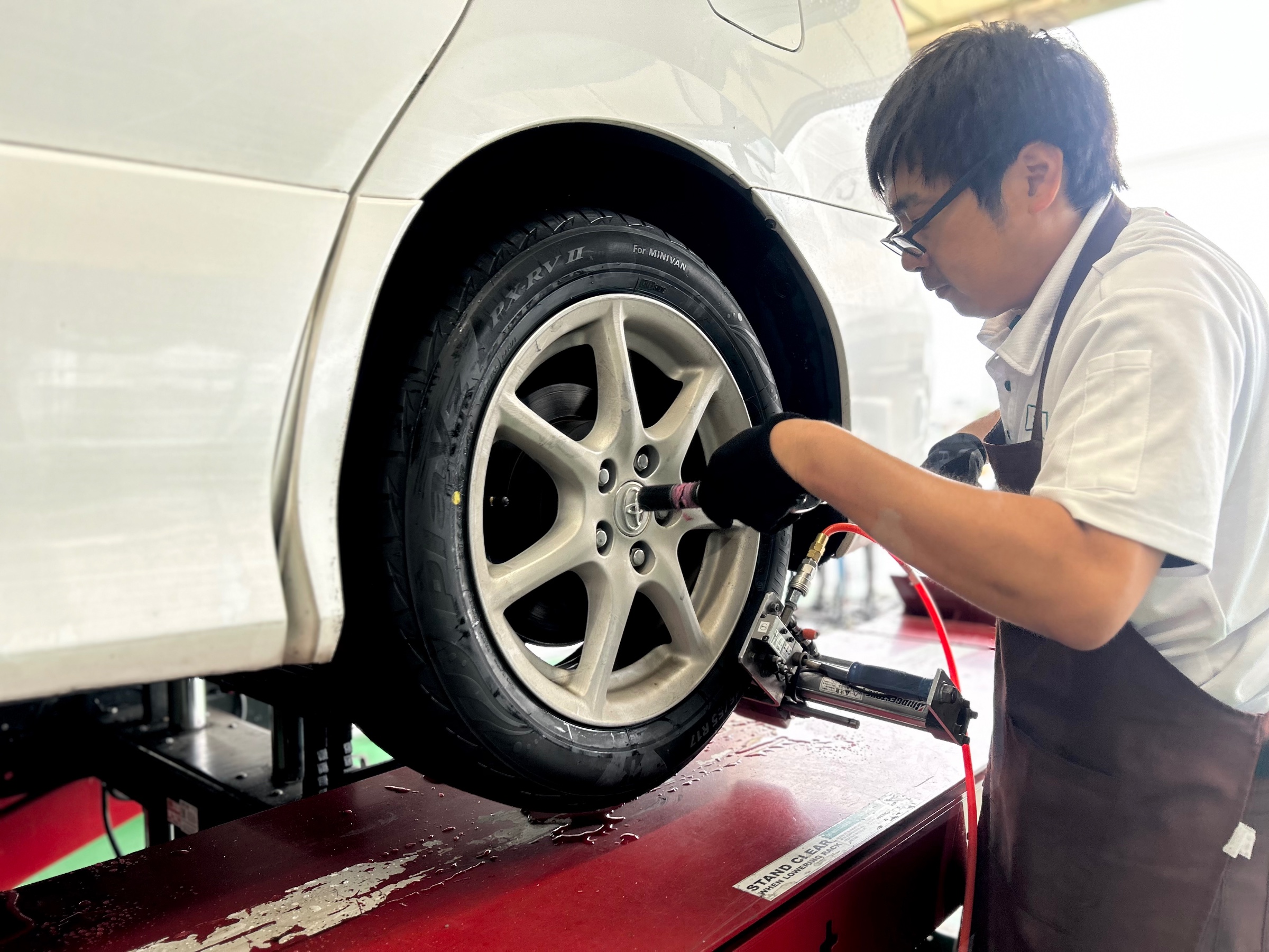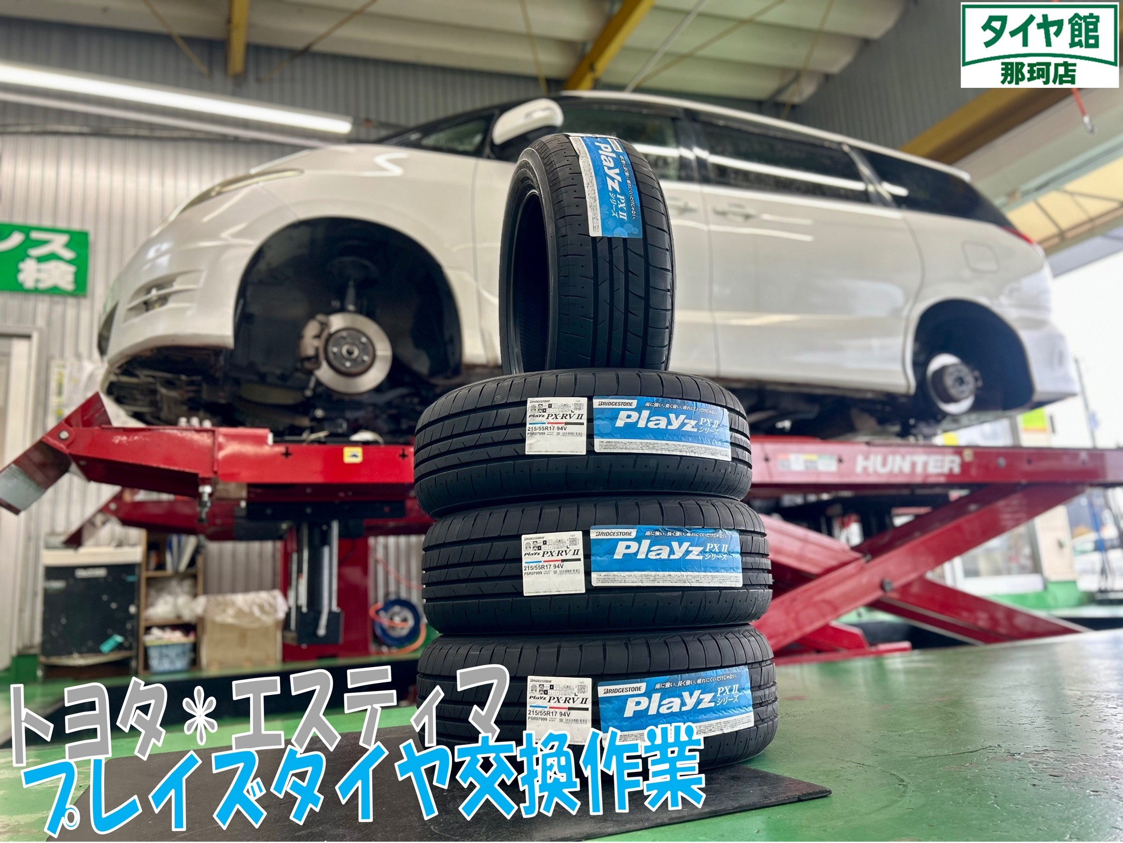 本日ご紹介させて頂く作業は、タイヤ点検からご成約頂きましたエスティマのサマータイヤ交換作業になります♪