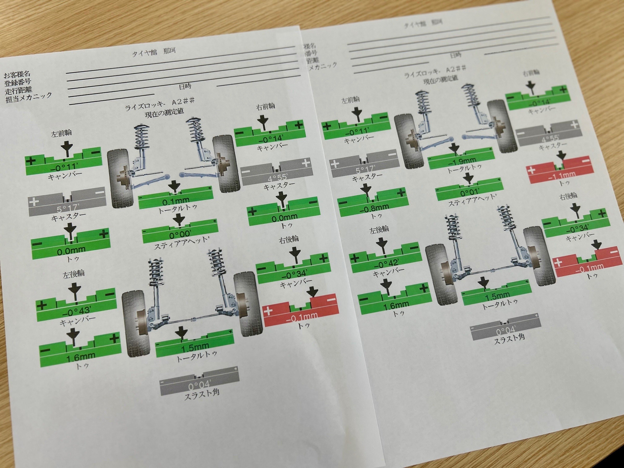 結果はトーアウトになっていましたので基準値ど真ん中に左右しっかり合わせて作業終了☆