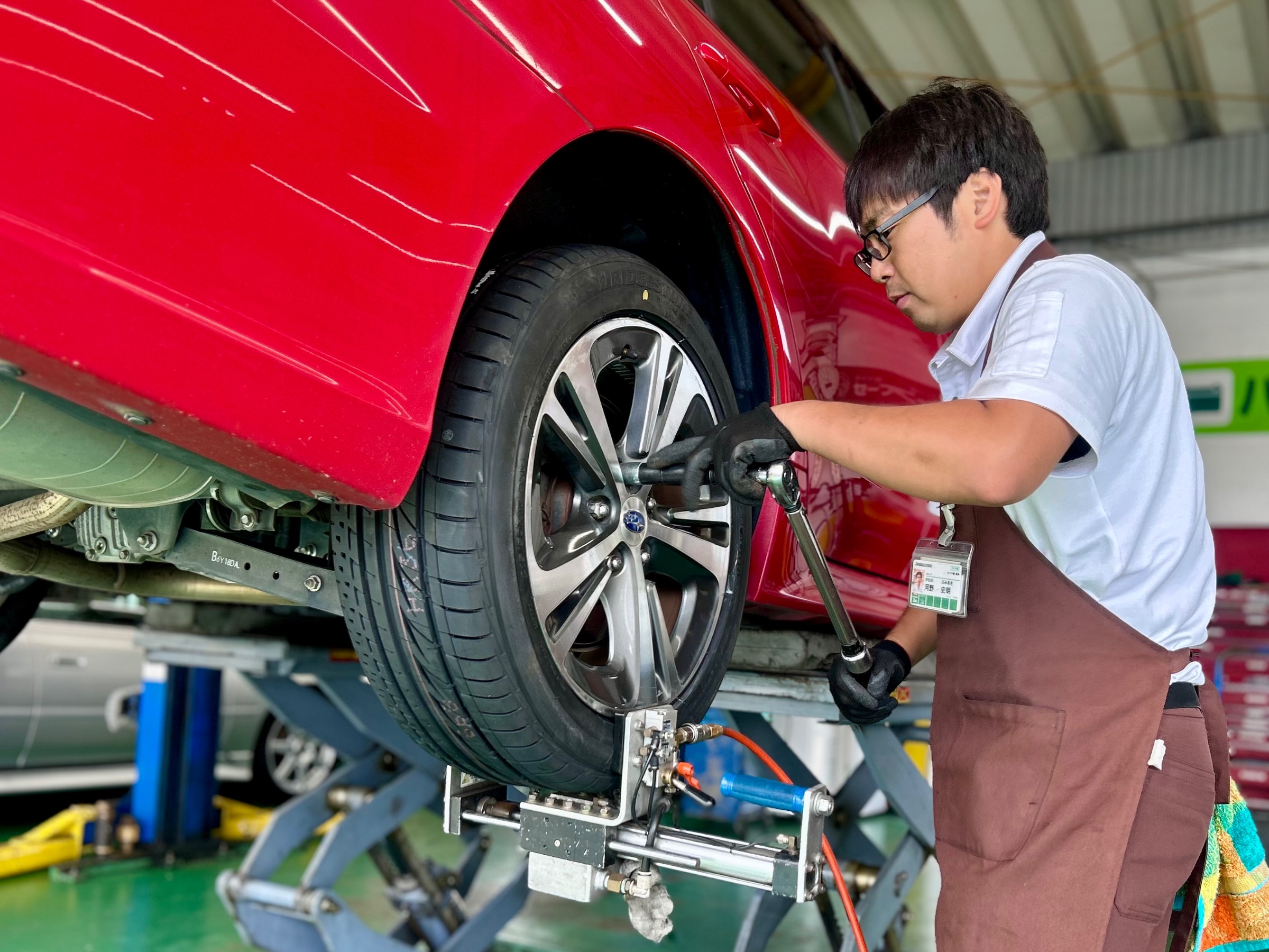 本日ご紹介させて頂く作業は、パンク点検でご来店くださいましたレヴォーグのタイヤ交換作業になります♪