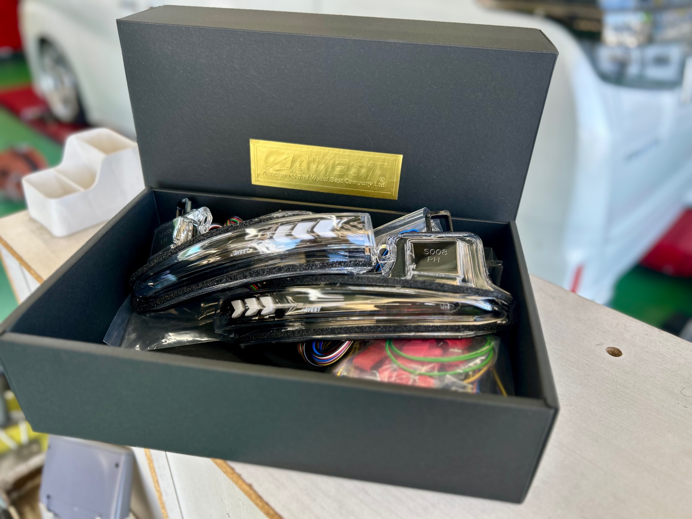 交換しましたドアミラーウィンカーはアベストの[VerticalArrow Type α] シーケンシャル機能付流れるドアミラーウインカーレンズのお取付作業を行いました☆彡