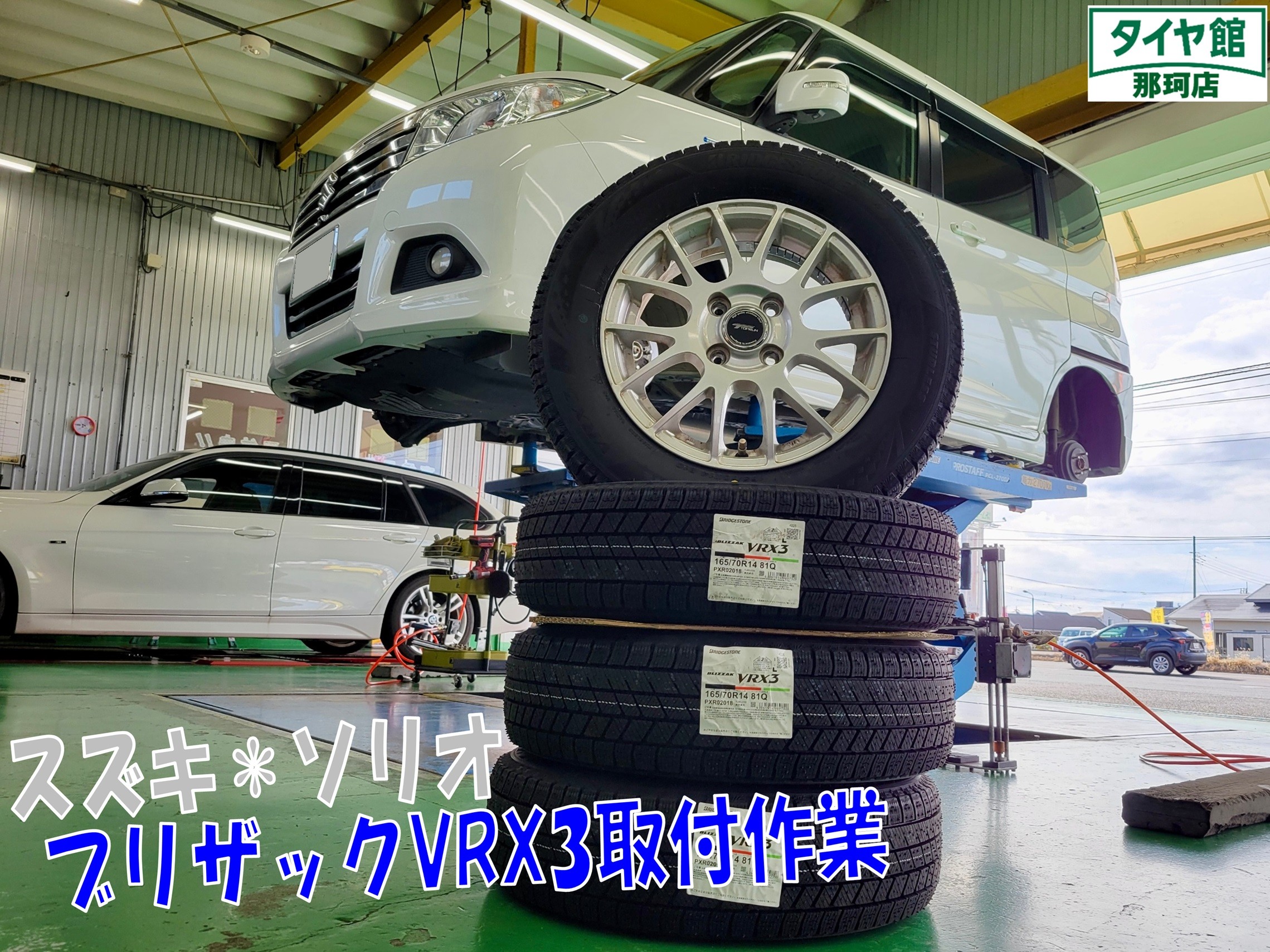 本日ご紹介させて頂く作業は、ご予約頂いておりましたソリオのブリザックスタッドレスタイヤ交換になります♪