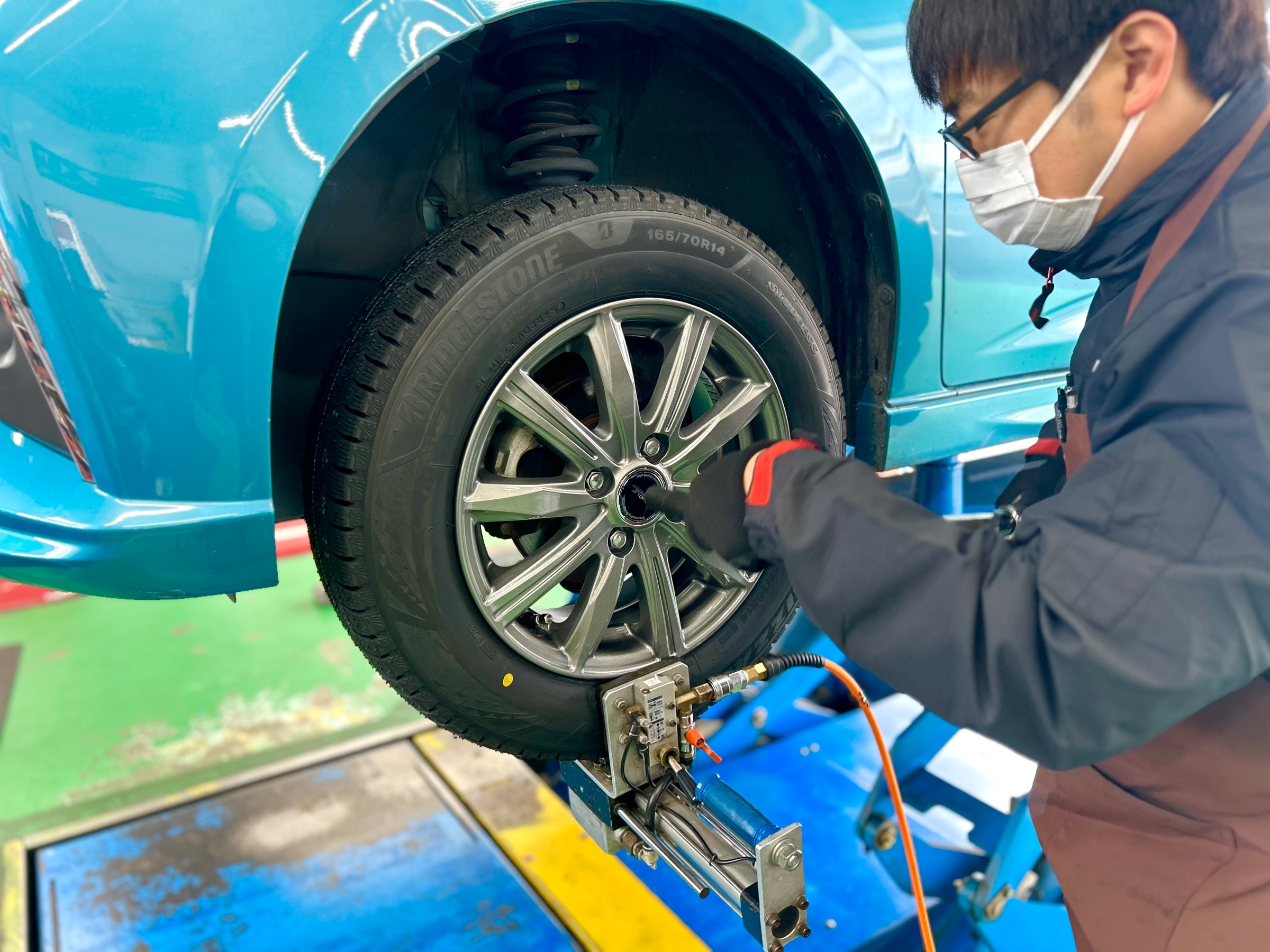 3台目にご紹介させて頂く作業は、ご予約頂いておりましたソリオのスタッドレスセット品取付作業になります♪