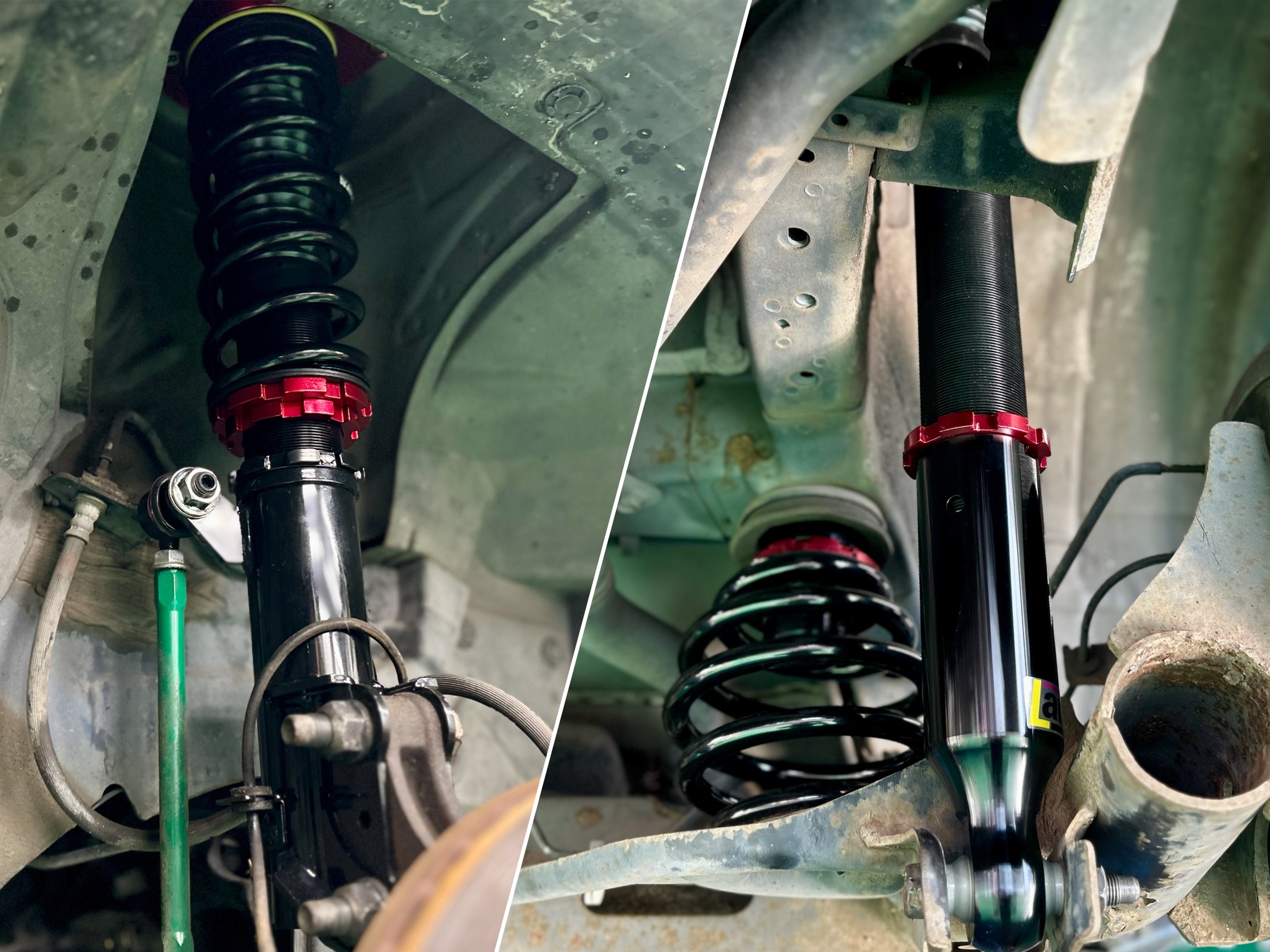 実は元々別の車高調が装着されていたのですが、長年のご使用でショックからオイル漏れしダンパーの役名を果たせずそのメーカーは設定を無くしてしまいましたので今回新調した経緯です。