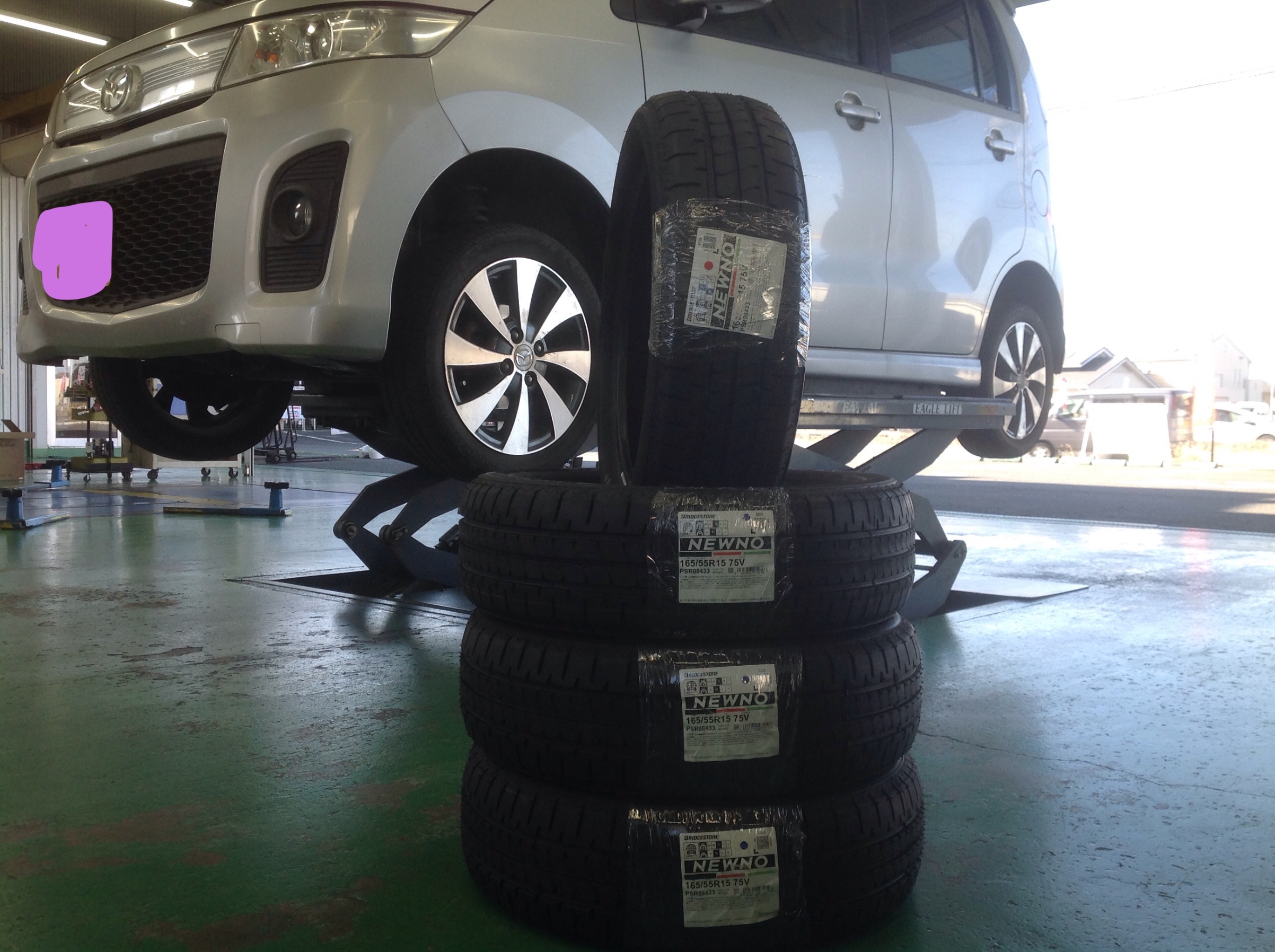 車検にてタイヤご購入いただきました、お車を止めるのは、ブレーキだけの力だけではありません、タイヤも車を止めるのに重要部品となります。