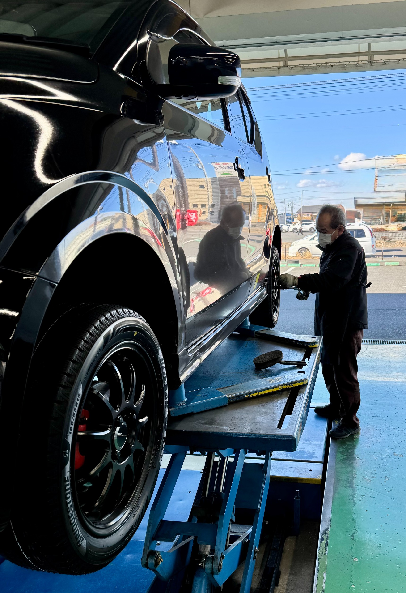 本日の作業内容は、 スズキ アルトワークス のスタッドレスタイヤ4本交換作業になります。