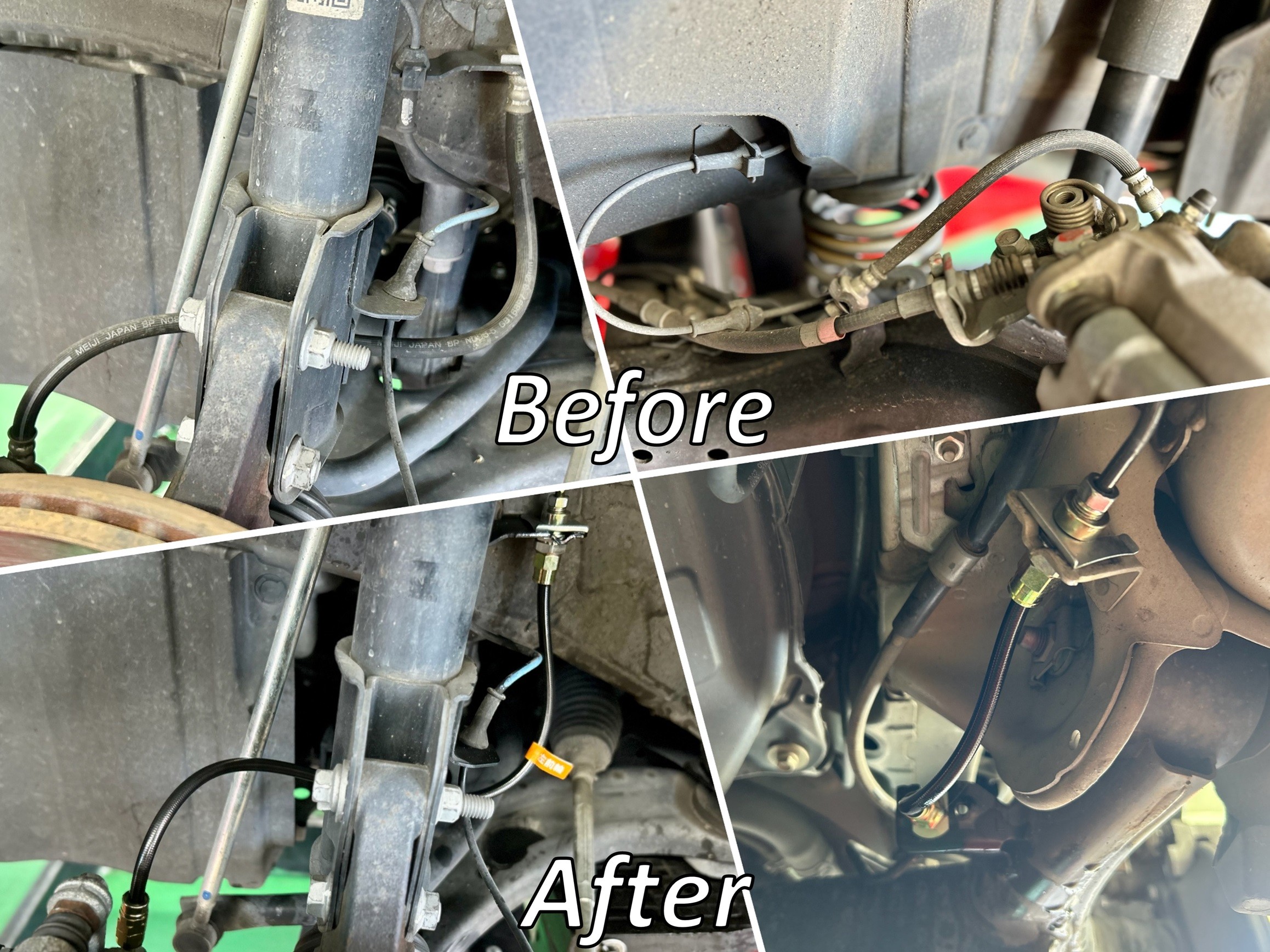 ブレーキホースは、ノーマルでは味わえないシャープなレスポンスとブレーキペダルタッチを目指して開発されたステンレスメッシュホースになりますのでブレーキのフィーリングが変わると思います♪