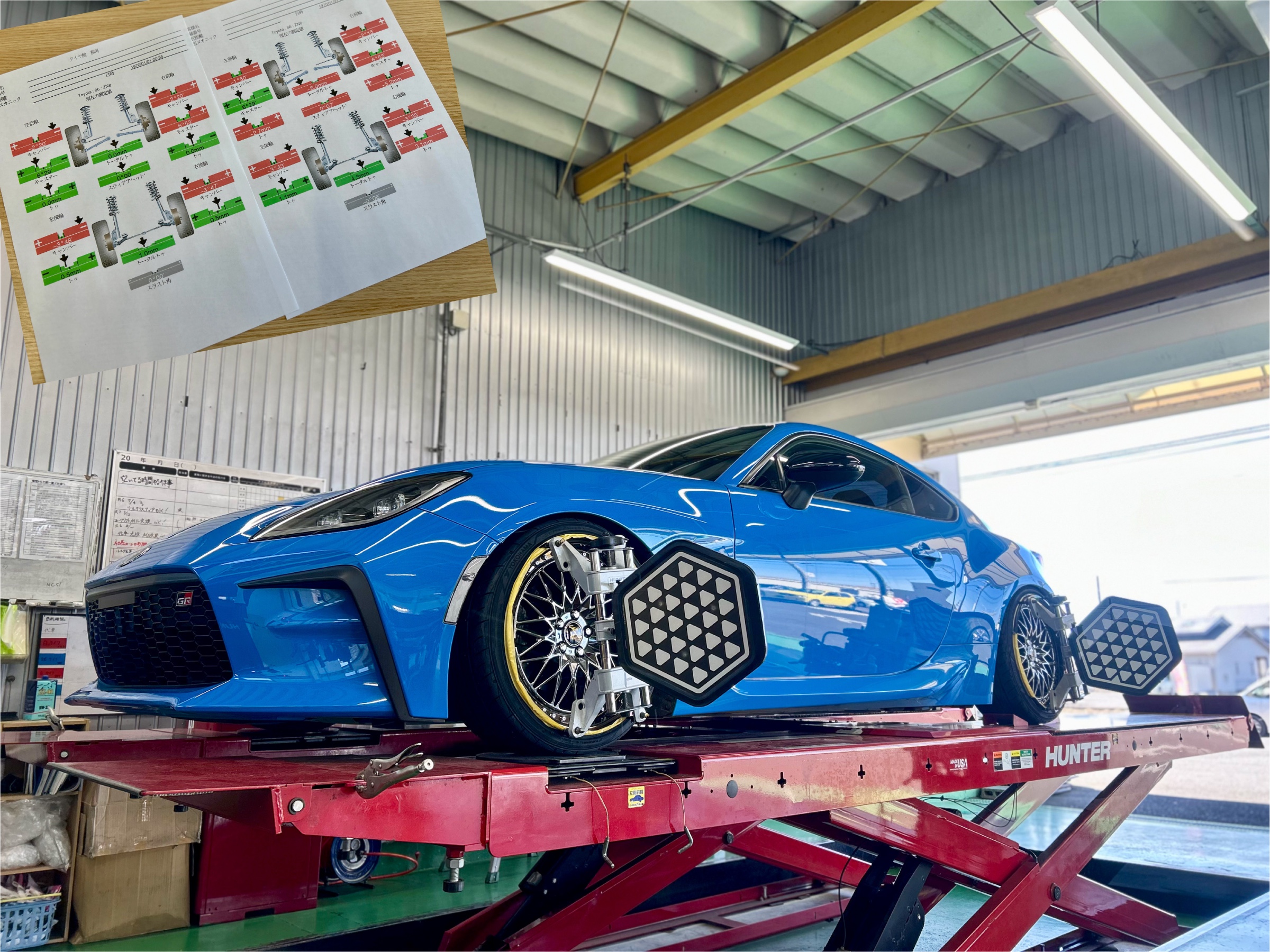 せっかく新しいホイールになりましたのでアライメント調整作業を実施☆