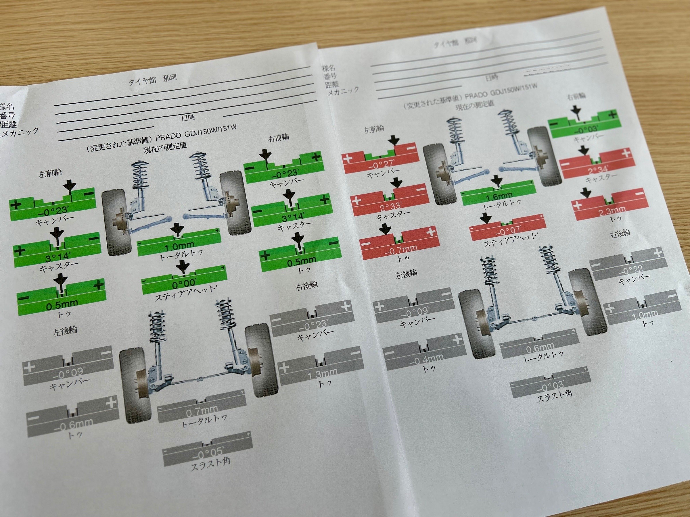 ご予約頂いておりましたランクルプラドのアライメント調整作業になります♪